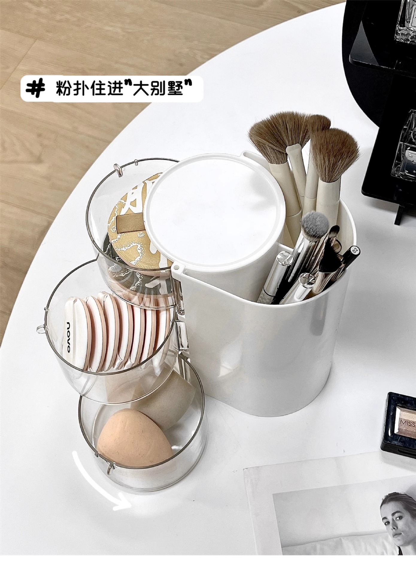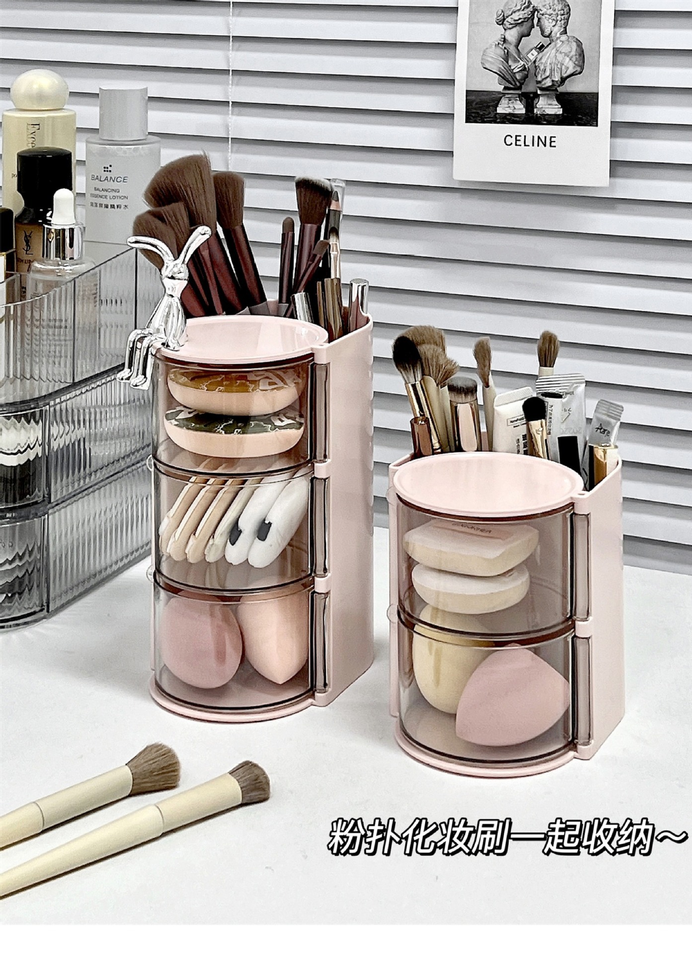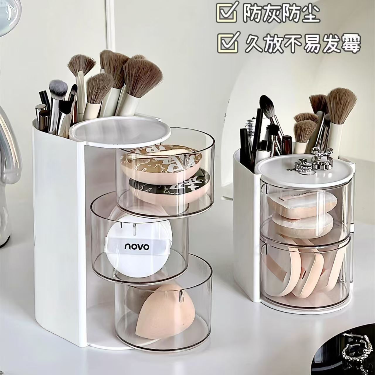 化妆品工具收纳盒旋转防尘桌面美妆蛋气垫架梳妆台多层粉扑收纳盒