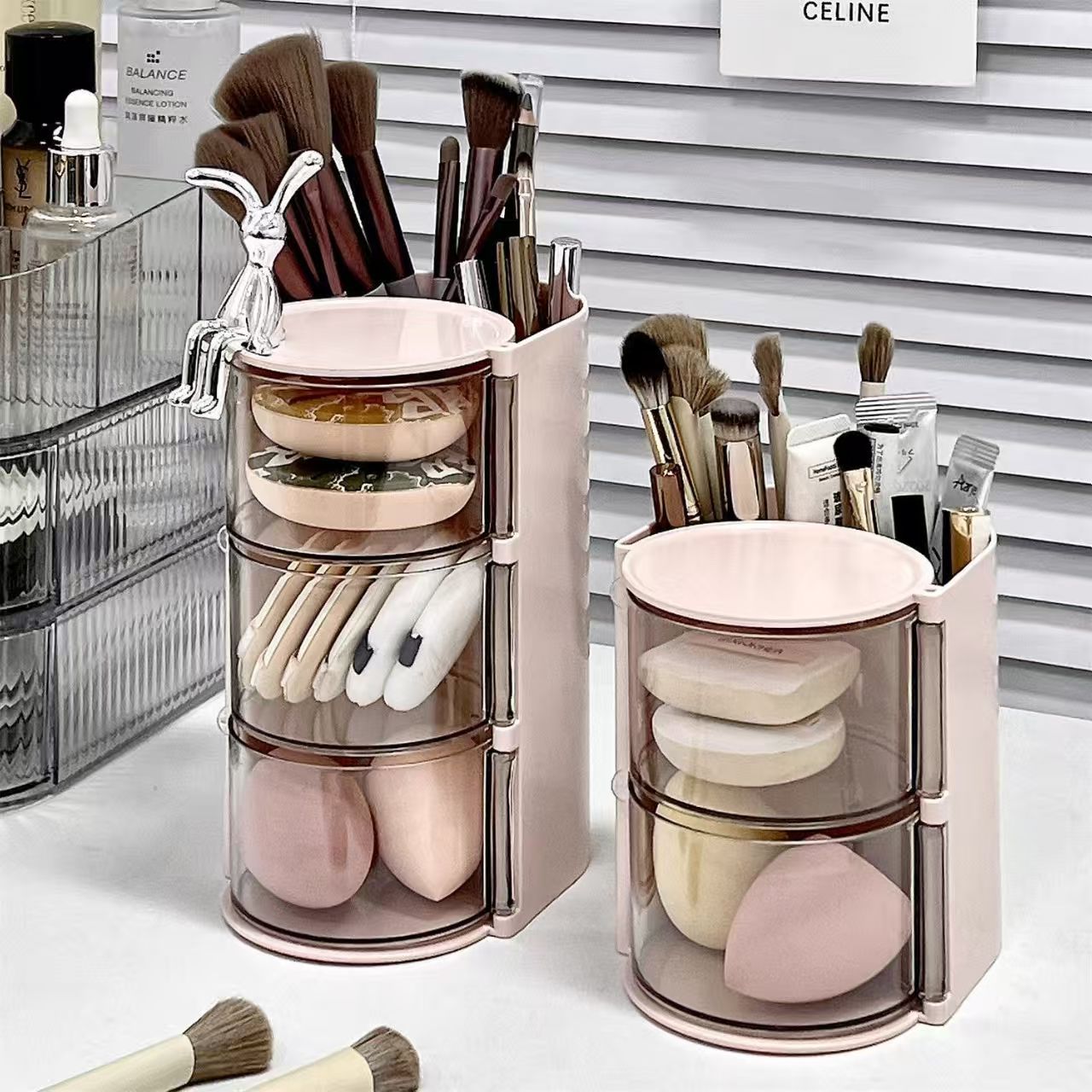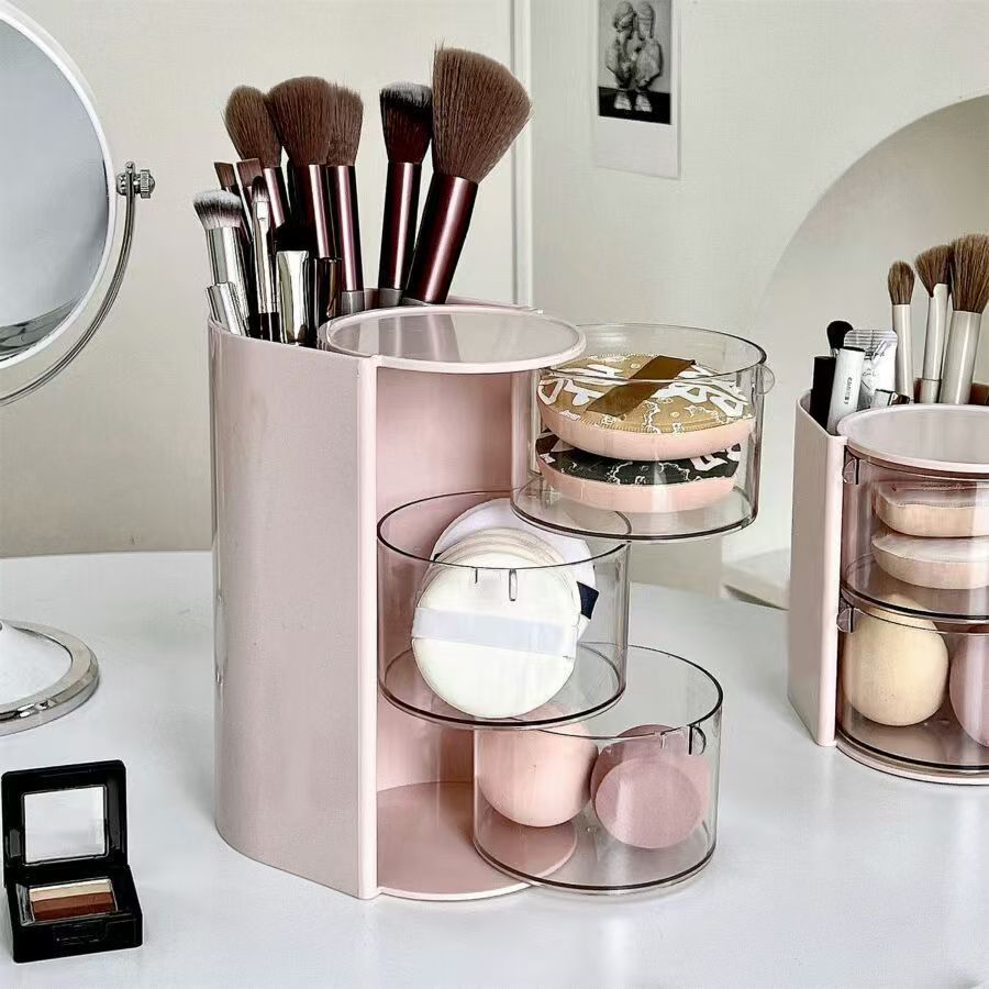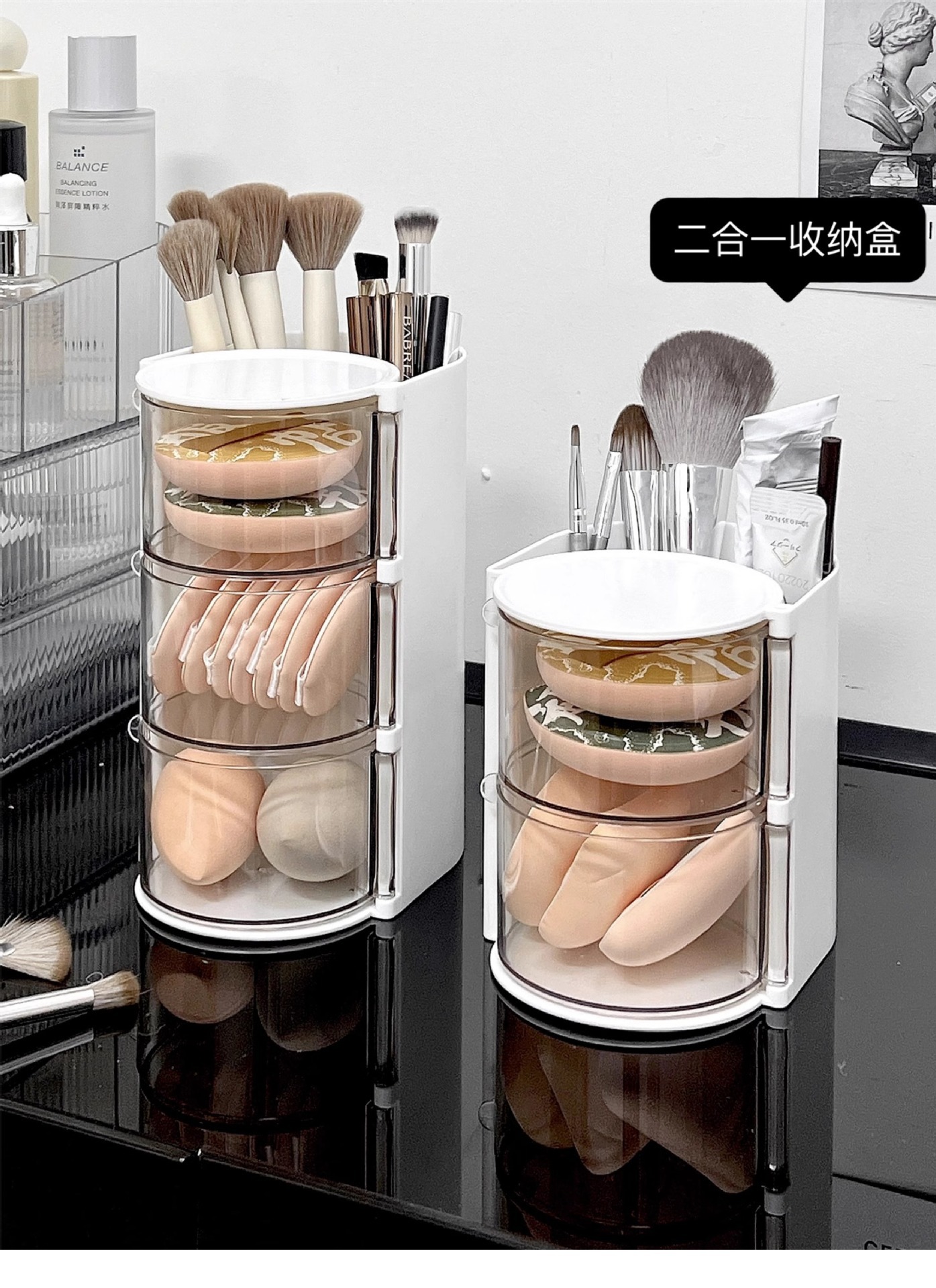 化妆品工具收纳盒旋转防尘桌面美妆蛋气垫架梳妆台多层粉扑收纳盒