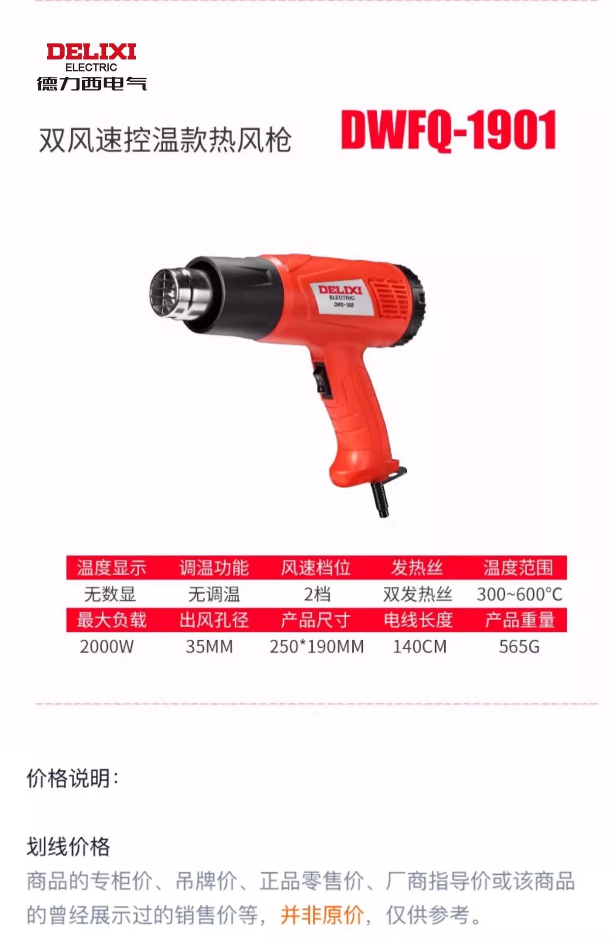 型号 德力西2000W两档标准款,德力西2000W(两档调温)标配,德力西2000W(两档调温)+4件套,德力西2000W(两档无极调温)标配,德力西2000W(两档无极调温)套餐一,德力西2000W【正面数显-精准调温】标配,德力西2000W【正面数显-精准调温】套餐一,德力西2500W(无极调温双档工业款)标配,德力西2500W(无极调温双档工业款)套餐一,德力西2000W护手-旗舰款【数显精准调温】标配,德力西2000W护手-旗舰款【数显精准调温】套餐一,德力西2500W(数显精准调温双档旗舰款)标配,德力西2500W(数显精准调温双档旗舰款)套餐一