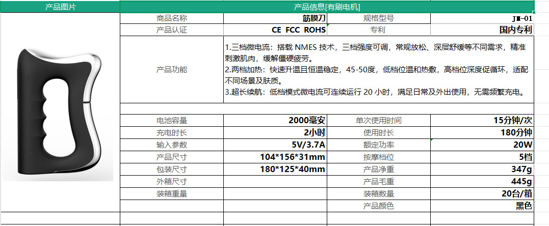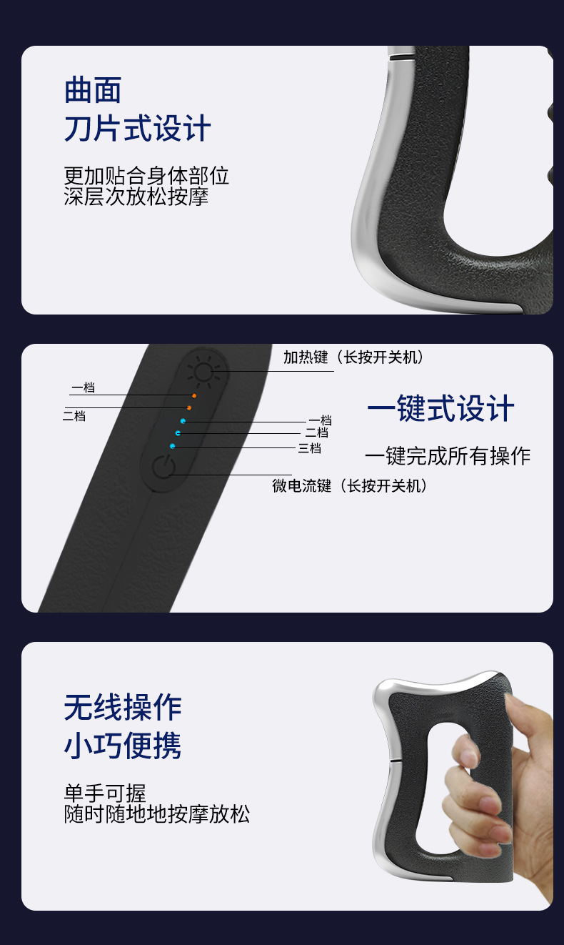 新款跨境筋膜刀智能充电微电流震动缓解酸痛放松肌肉疏通按摩仪