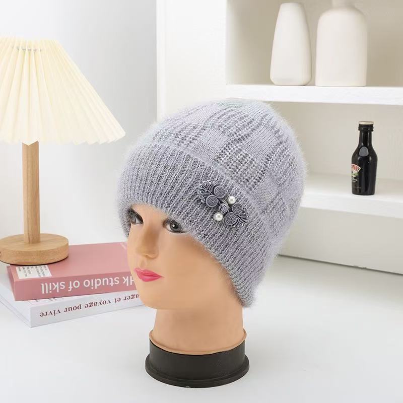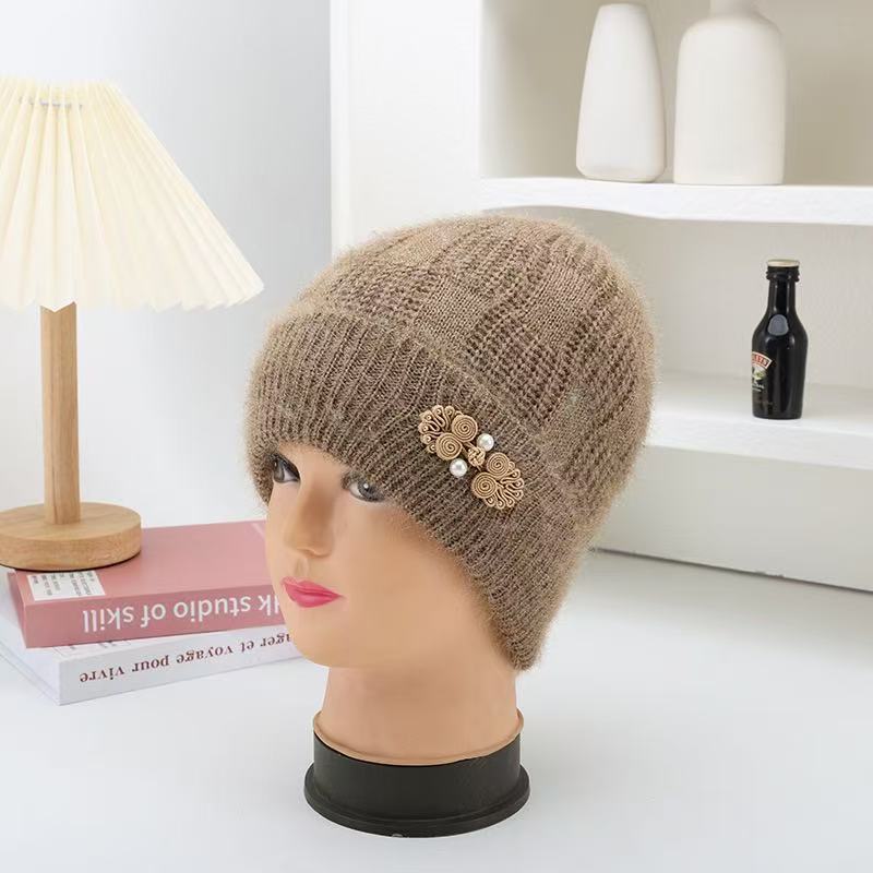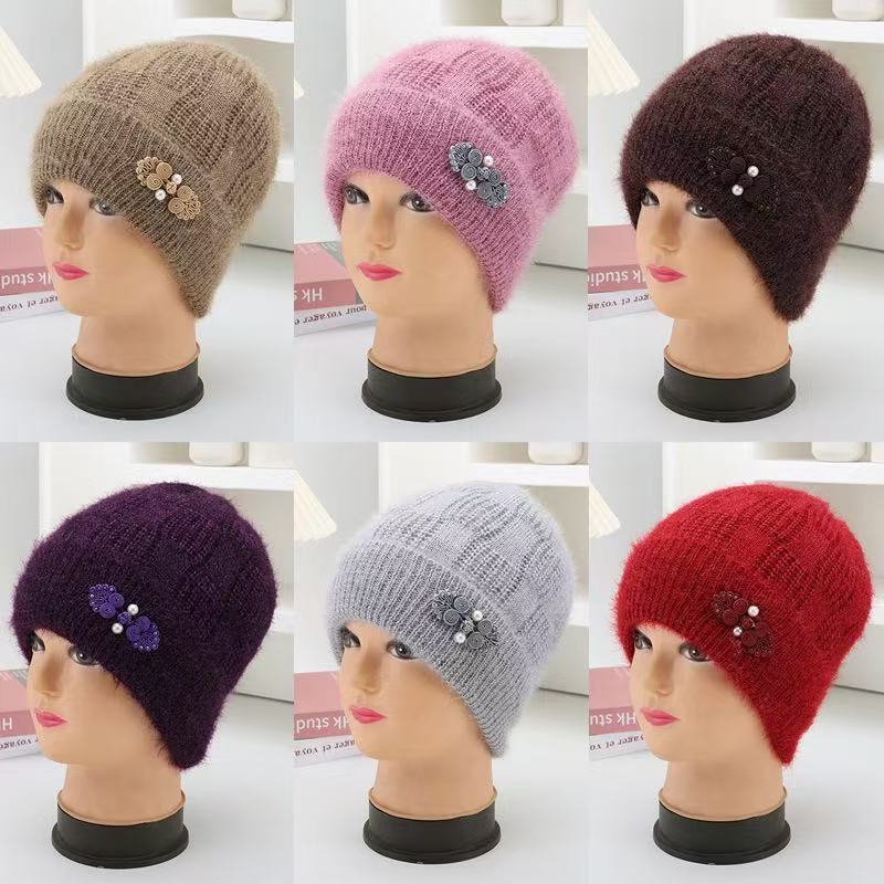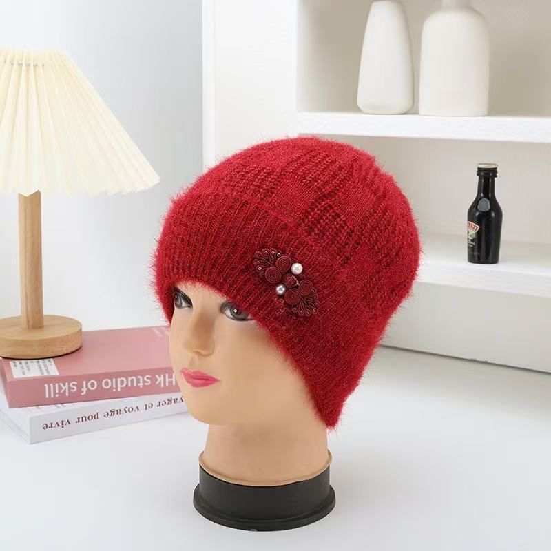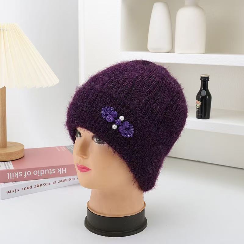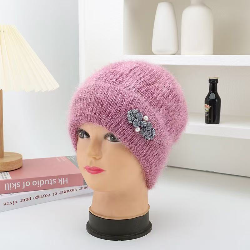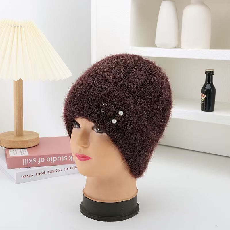 冬の新型ベルベットは保温ファッション耳保護母祖母帽毛糸ニット帽女性中高年帽子を厚くした
