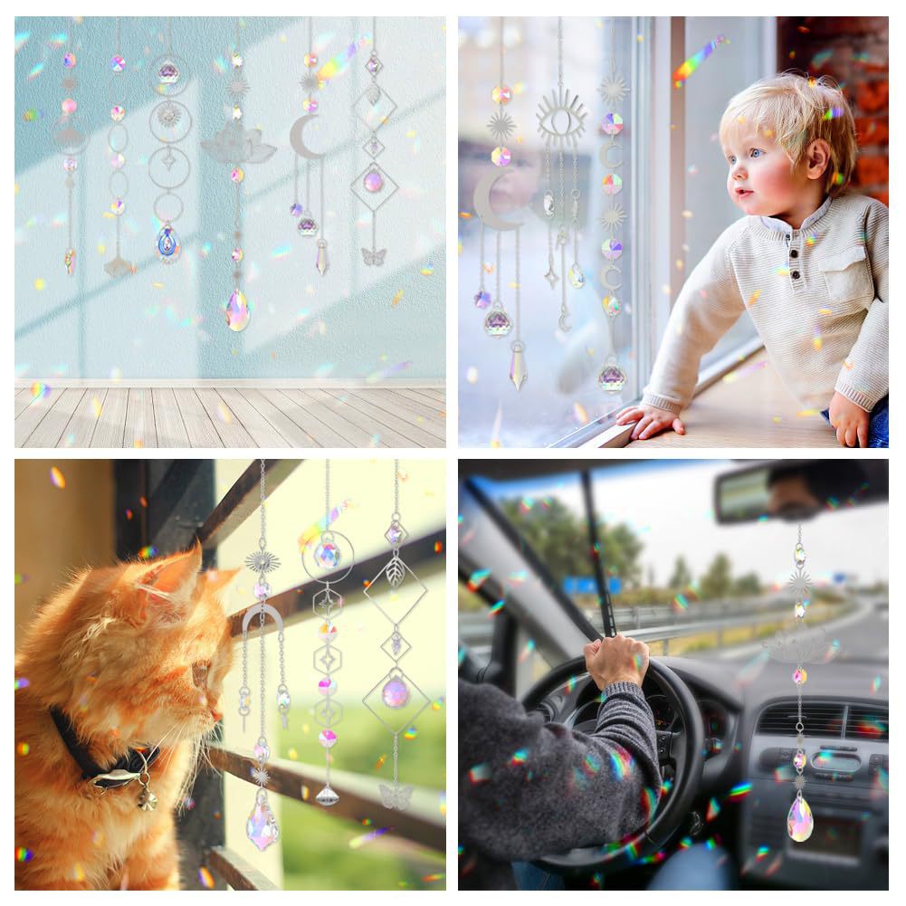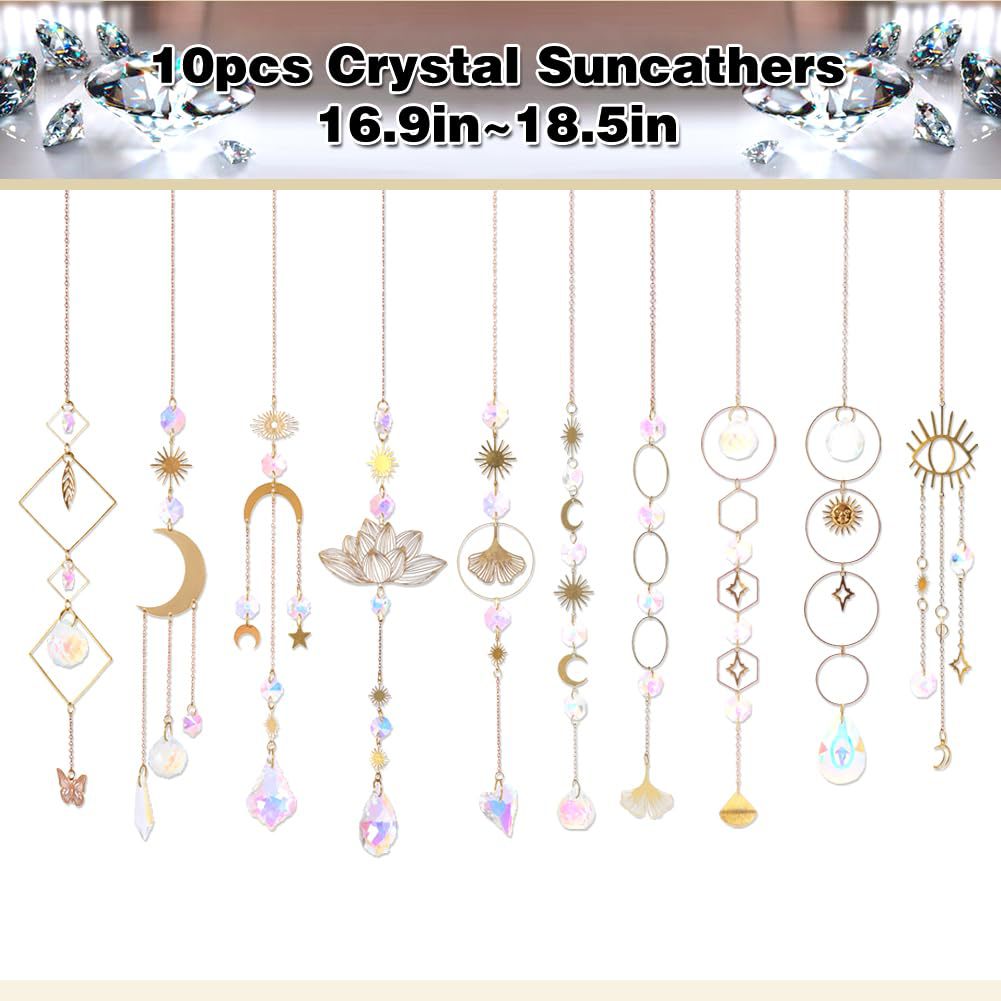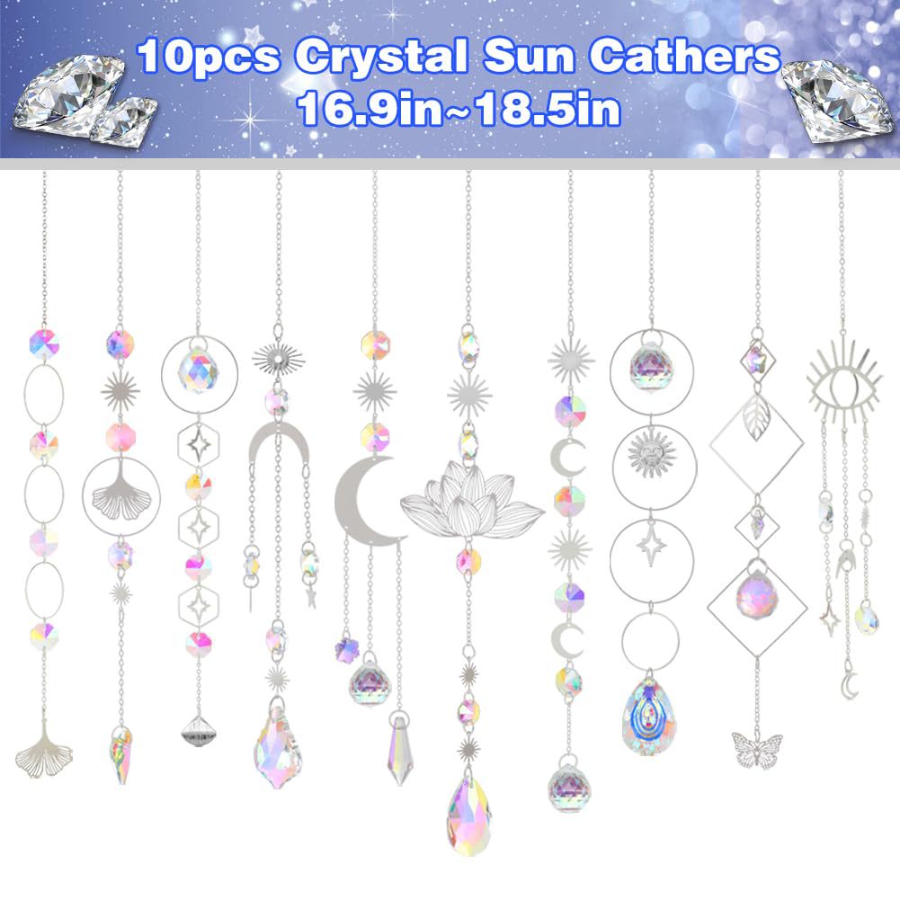 阳光捕捉器,10件水晶阳光捕获棱镜悬挂套装,带链条的彩虹制造水