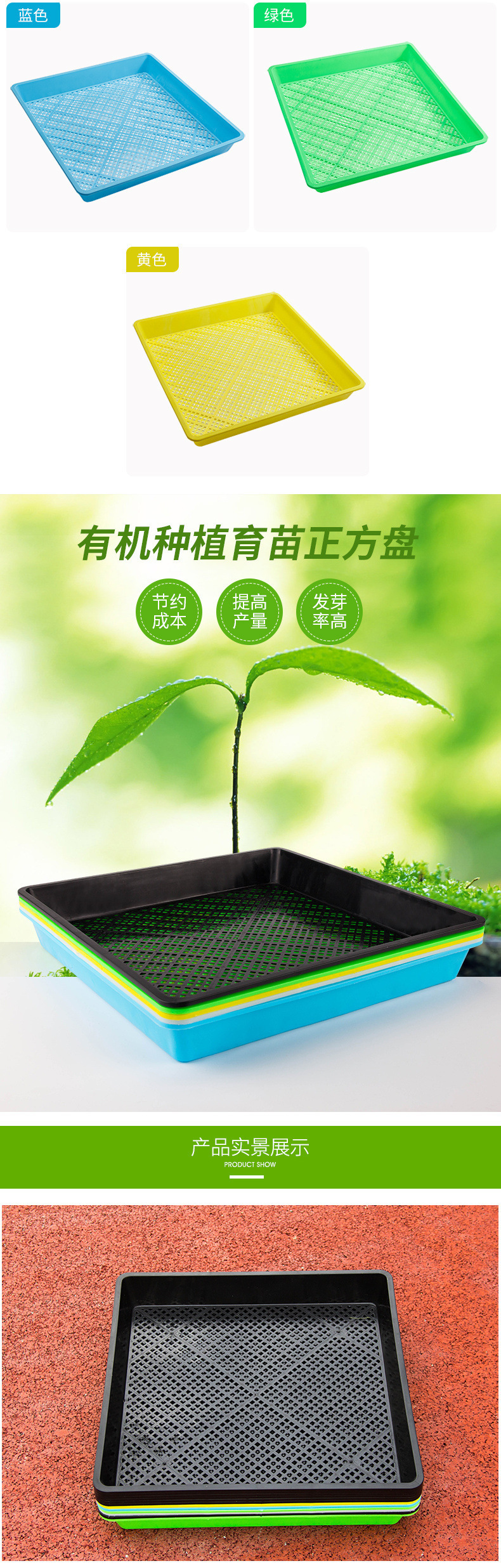 颜色 黑色正方盘,四方盘40*40*4.5cm,绿色正方盘,蓝色正方盘,黄色正方盘,白色正方盘,红色正方盘,加厚240克正方盘,加厚加深320克正方盘,特大号480克正方盘,S1加密平盘30*37*7.5cm,S2叶插盘【黑色 】26*18*7.5cm,【 黑色】长方盘54*27*6cm,正方形种草盘50*50*8cm,【白色 】长方盘54*27*6cm,小号组培框52*42*7cm,【大号 】耐高温组培筐72*42*6cm,长方形种草盘55*35*8cm,S2叶插盘【绿色 】26*18*7.5cm,S2叶插盘【白色 】26*18*7.5cm