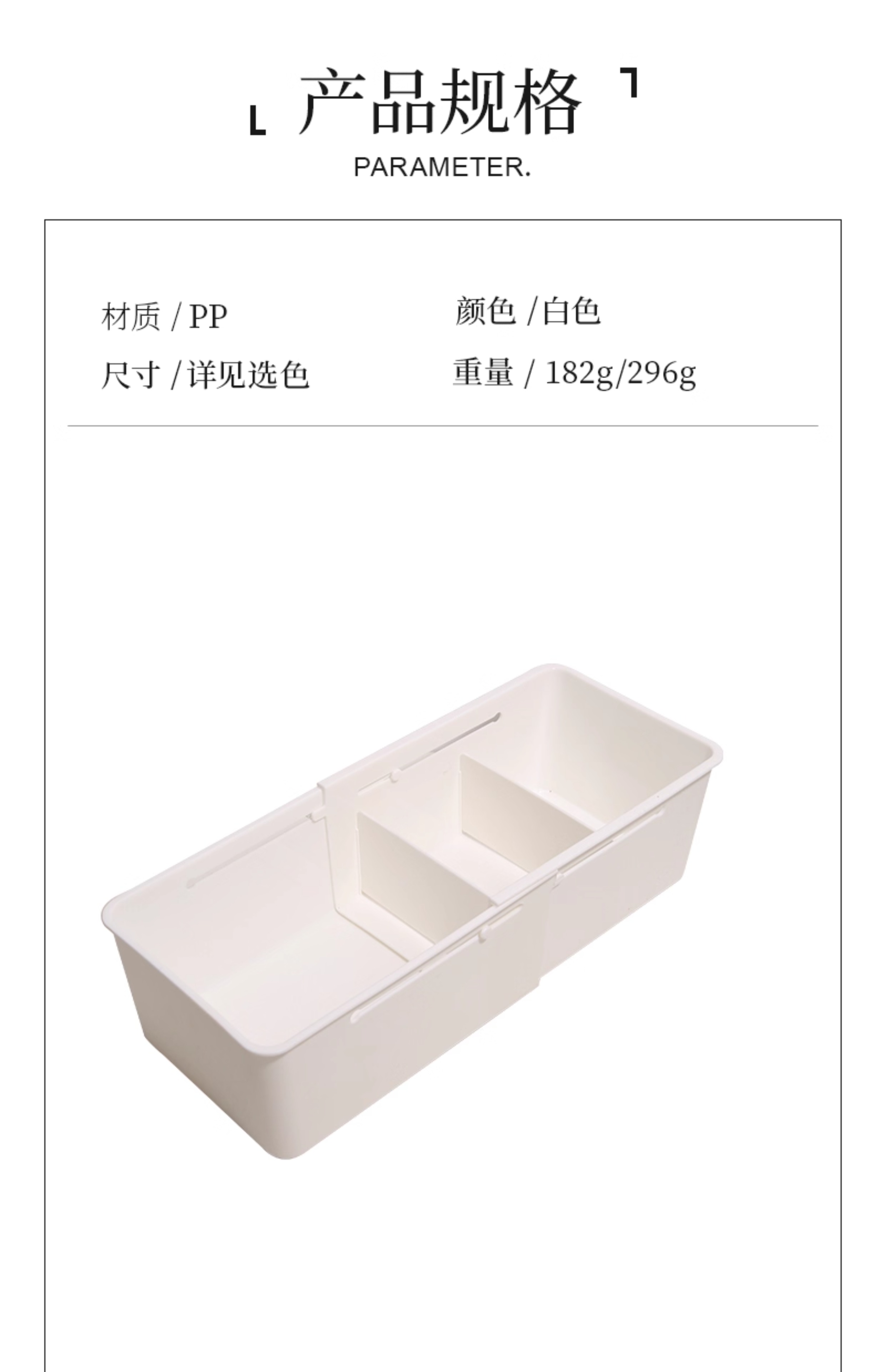 颜色 分格-窄款白,分格-宽款白,透明色收纳盒-小号方盒,透明色收纳盒-中号长盒,透明色收纳盒-大号长盒,透明色收纳盒-特大号方盒