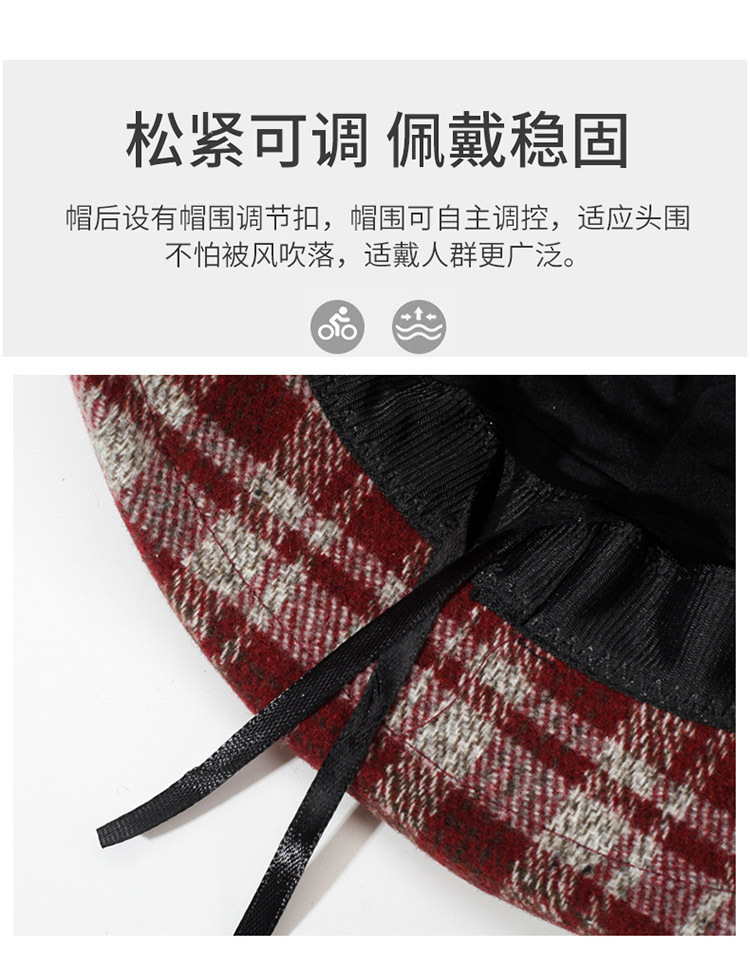 加厚帽子妈妈秋冬季女士秋冬奶奶格子毛呢盆帽中老年女士新款帽子