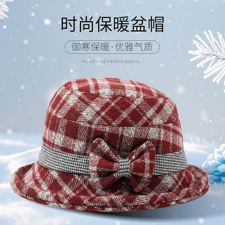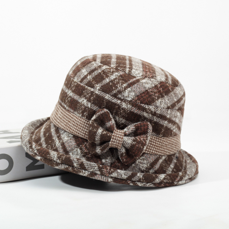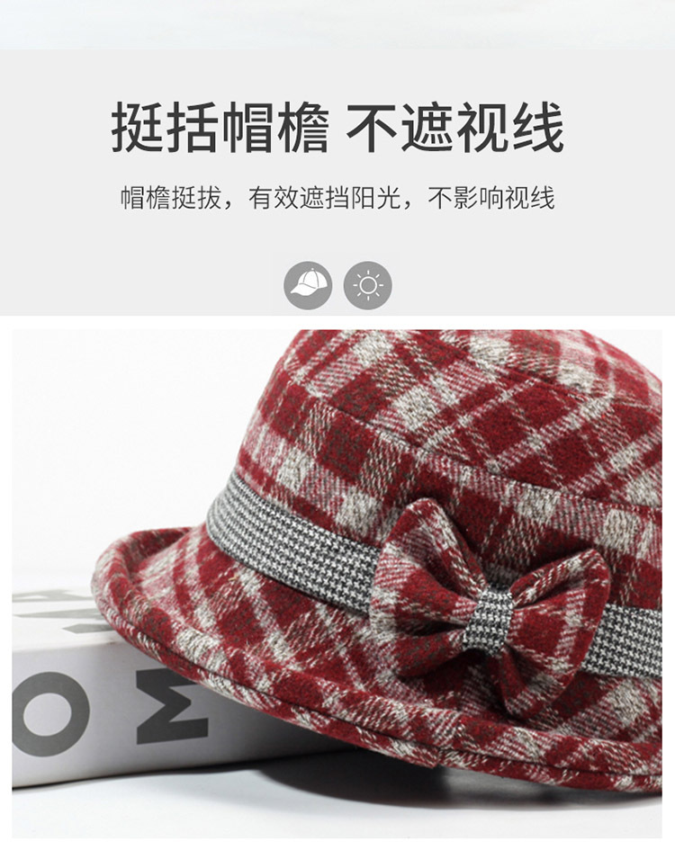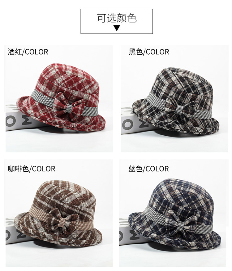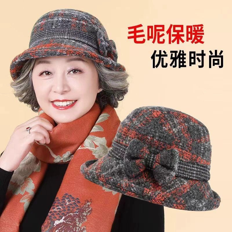 秋冬季毛呢格子保暖妈妈帽盆帽中年老人帽子奶奶渔夫帽婆婆帽女帽