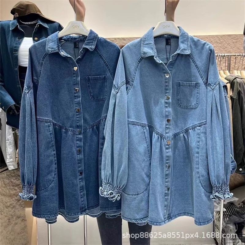 韓国東大門2025春秋新作デザイン感愛ボタンゆったりポンポンデニムシャツ式ワンピース