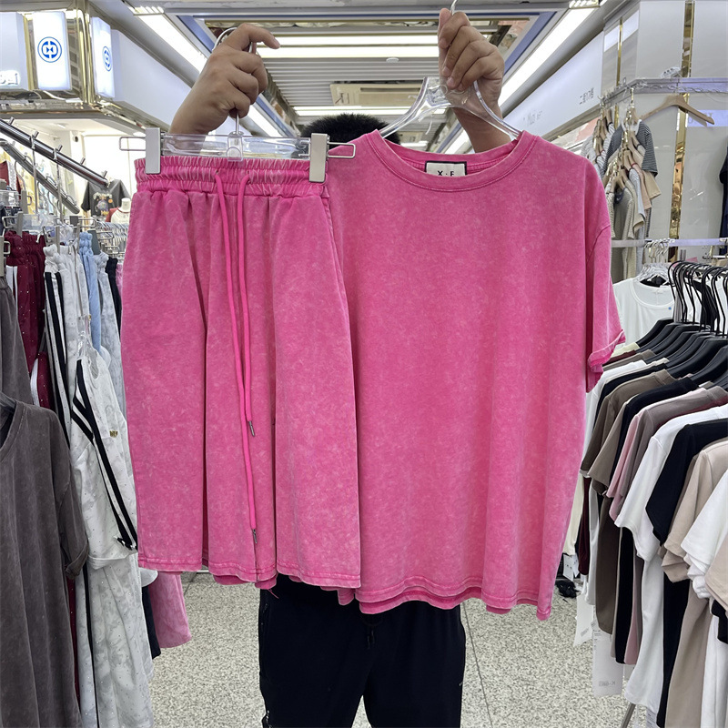 ヨーロッパとアメリカのクロスボーダートレンディなブランド大きいサイズの女性用ルーズ半袖Tシャツスーツ夏用伸縮性ハイウエストショーツ2点セット