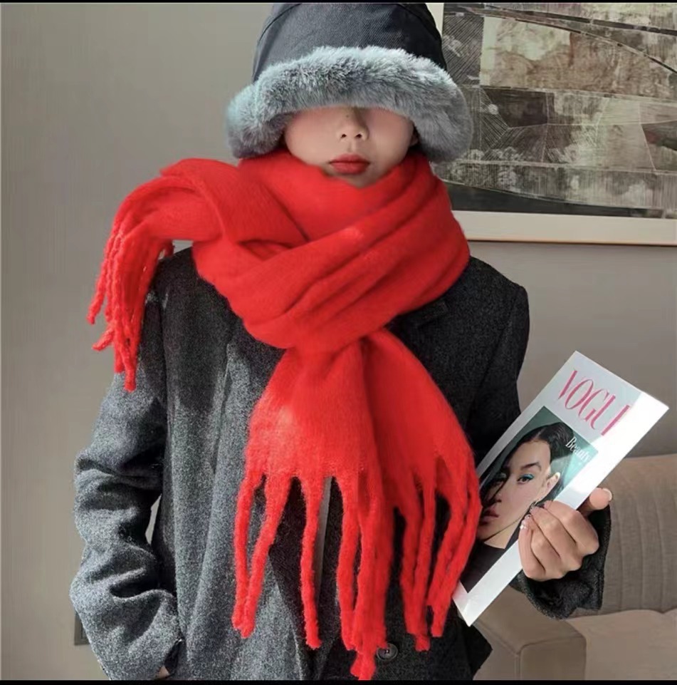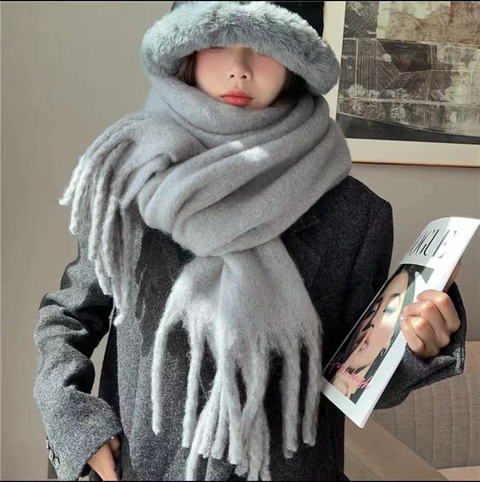 秋冬の新スタイルモヘアソフトでふわふわの無地スカーフ女性用冬多用途模造カシミア厚く暖かいショールトレンディ