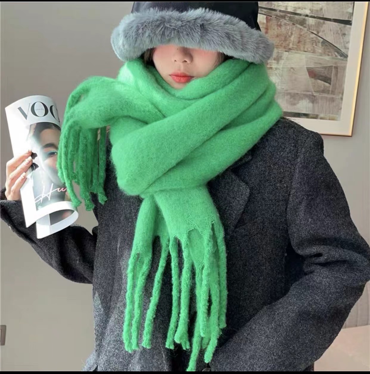 纯色马海毛围巾女韩系秋冬氛围感糖果色保暖披肩百搭加厚围脖外贸
