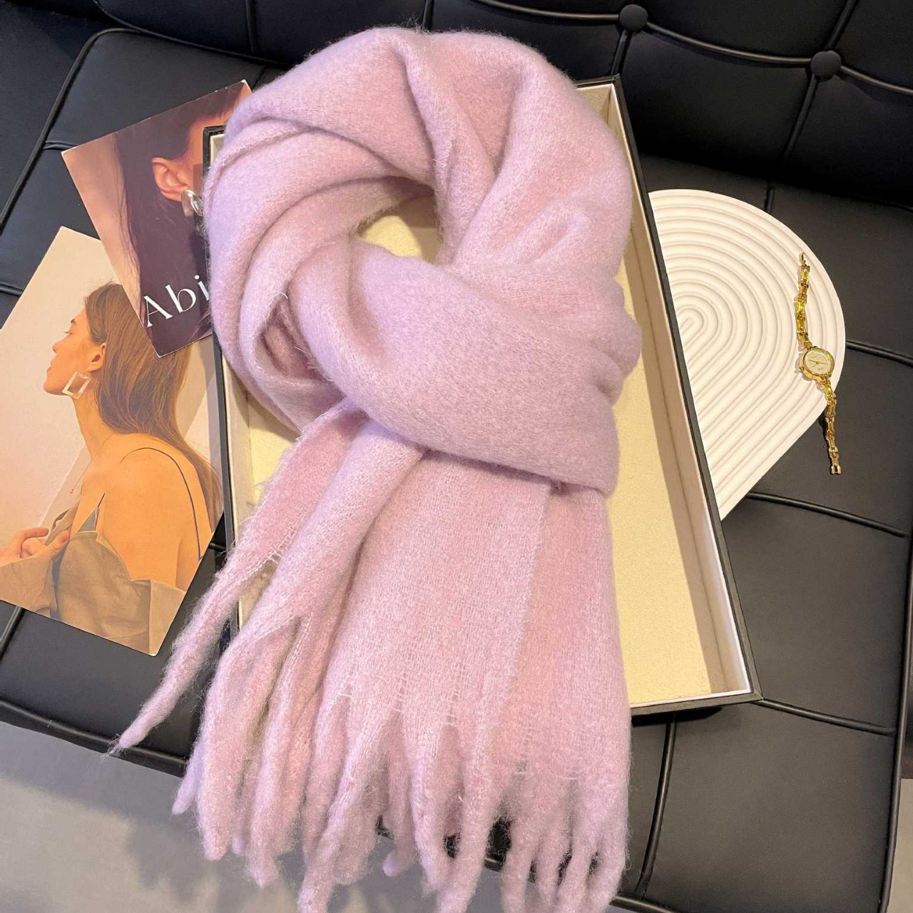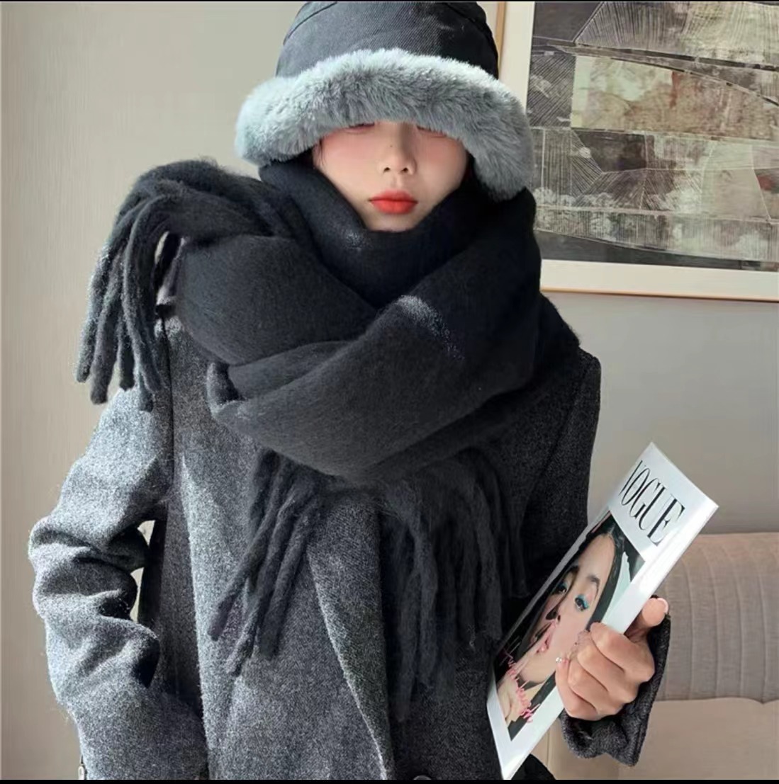 無地モヘアスカーフ レディース 秋冬 2025年新作 万能ネックウォーマー 韓国風 高級感 厚手 暖かいショール