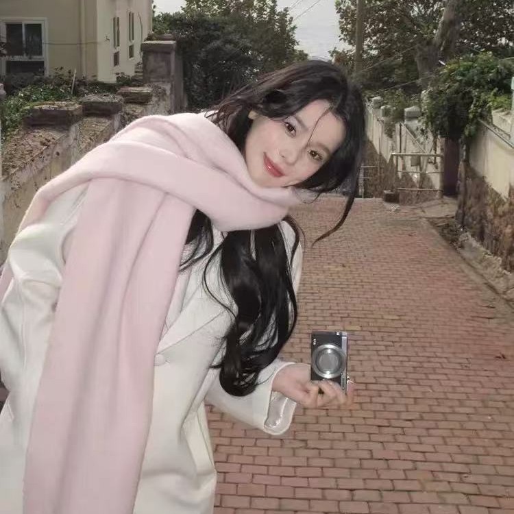 ソリッドカラーの厚くて長いスカーフ女性のための 2025 秋と冬の新しい韓国スタイルの冬の学生多用途ショール女性のスカーフピンク