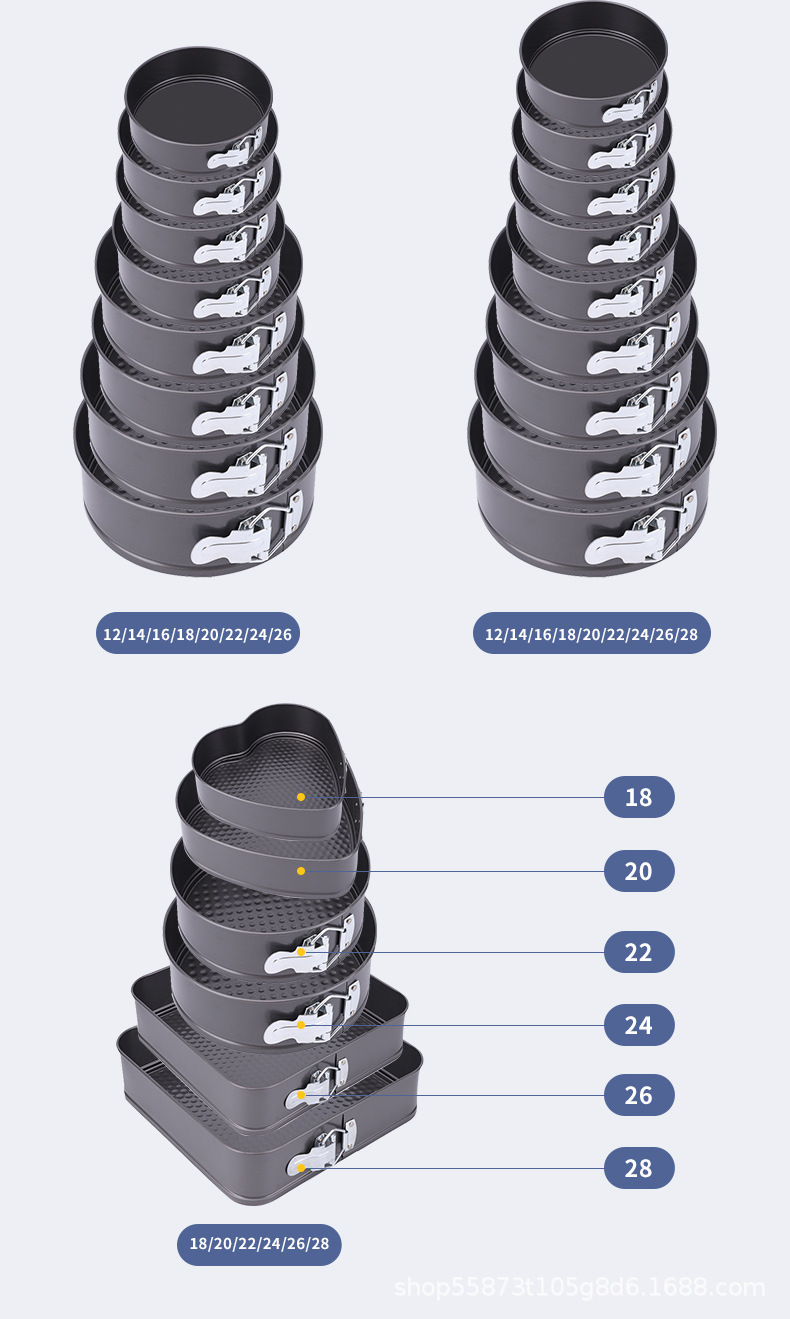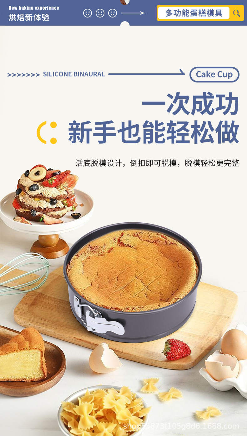 跨境不沾圆形带扣活底烤盘工具多规格烘焙模具戚风蛋糕模具不漏液