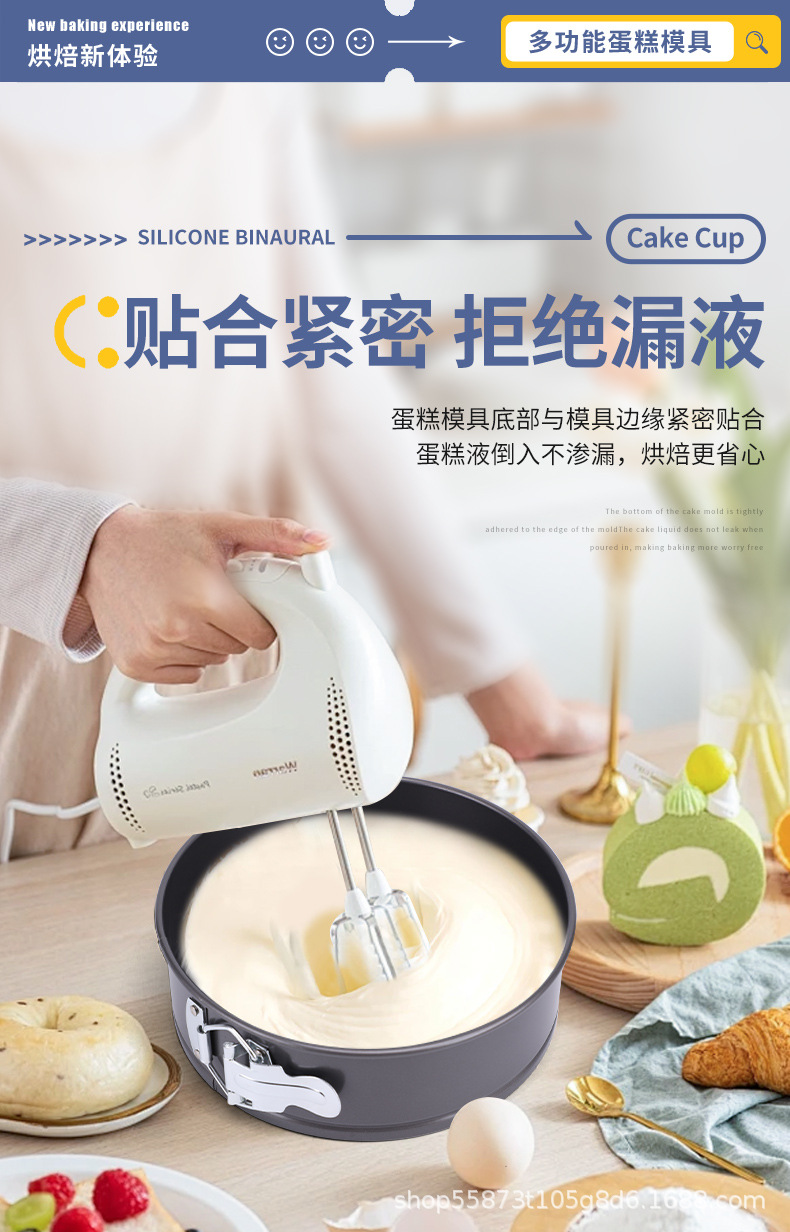 碳钢带扣活底戚风蛋糕模具家用不沾慕斯蛋糕模多尺寸烤盘烘焙工具