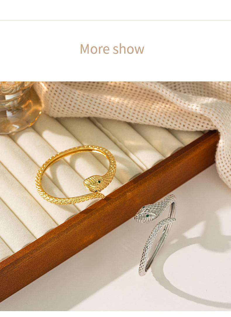 欧美跨境新品灵蛇形手镯戒指套装女铜材质真金电镀高品质百搭手环