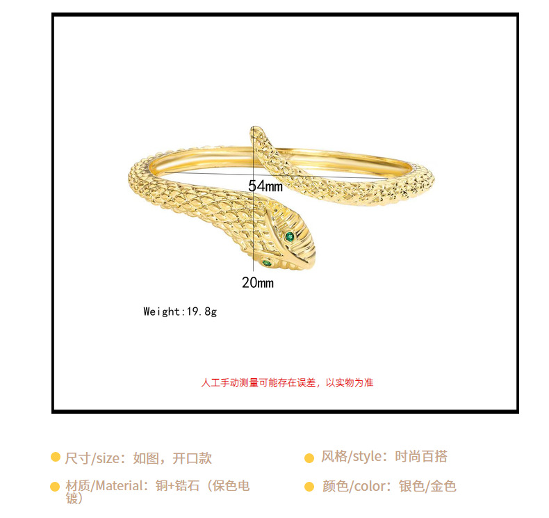 欧米の国境を越えて流行している起爆金の蛇の形の指輪の銅はジルコンのファッションを象眼します。