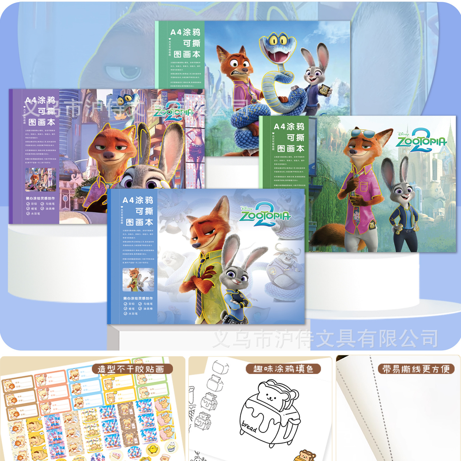 网红热卖疯狂动物城2图画本卡通带贴纸涂色绘画本学生空白素描本