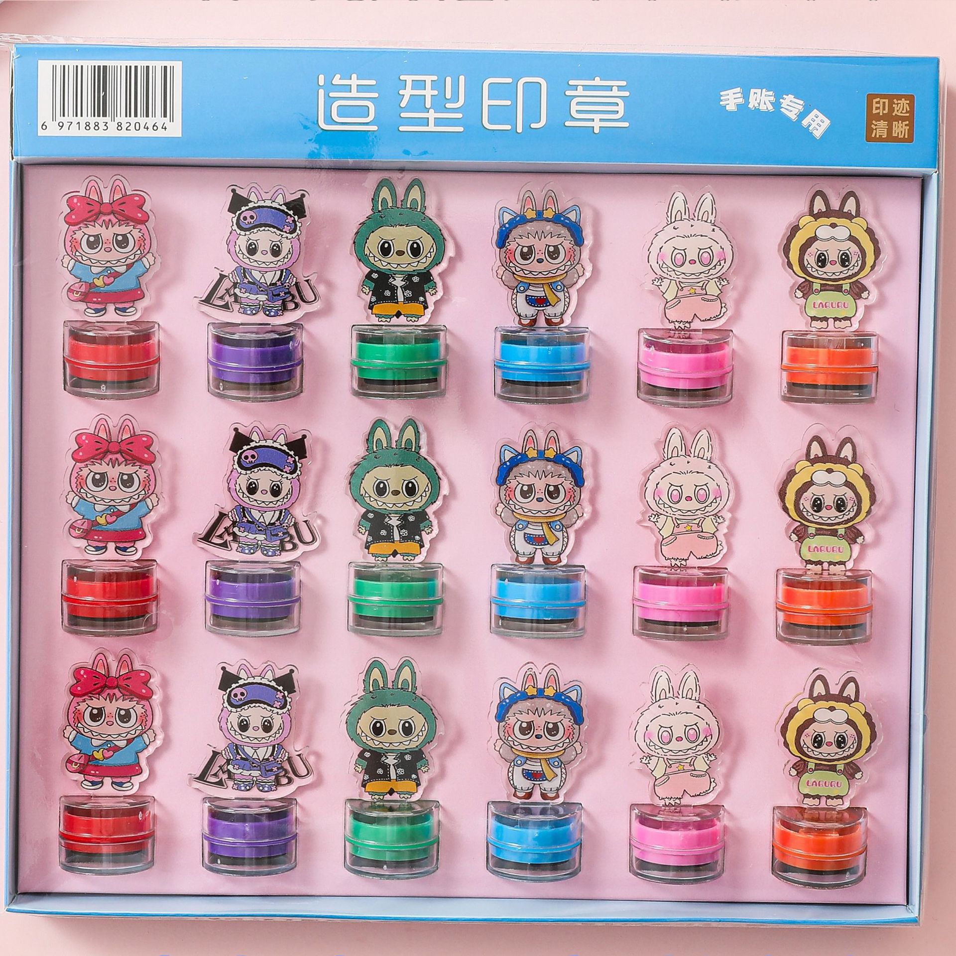 新款热卖拉布布18入亚克力造型印章幼儿园卡通可爱儿童手账印章批
