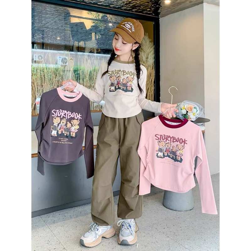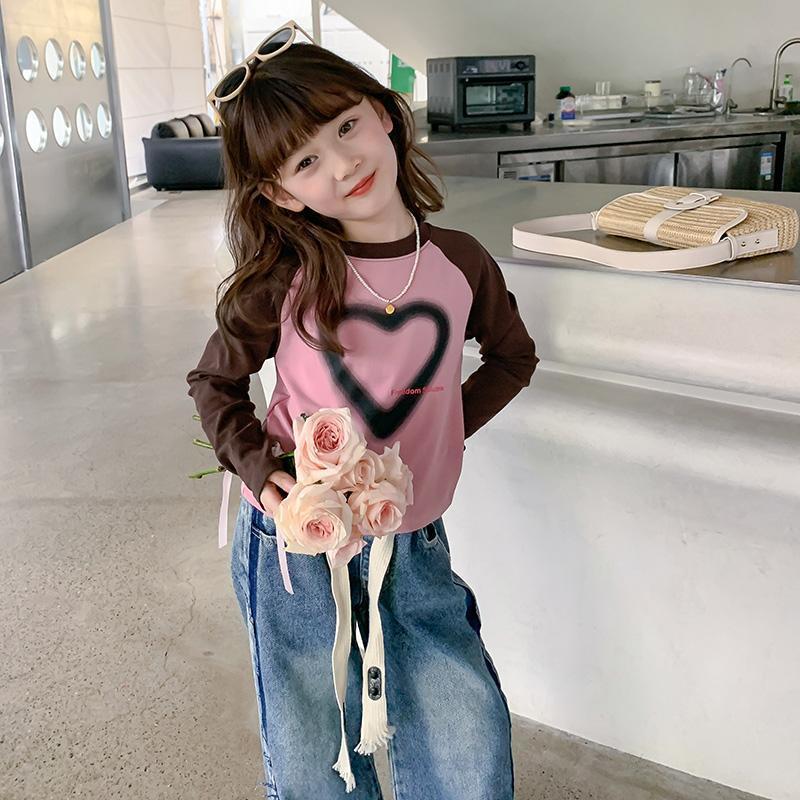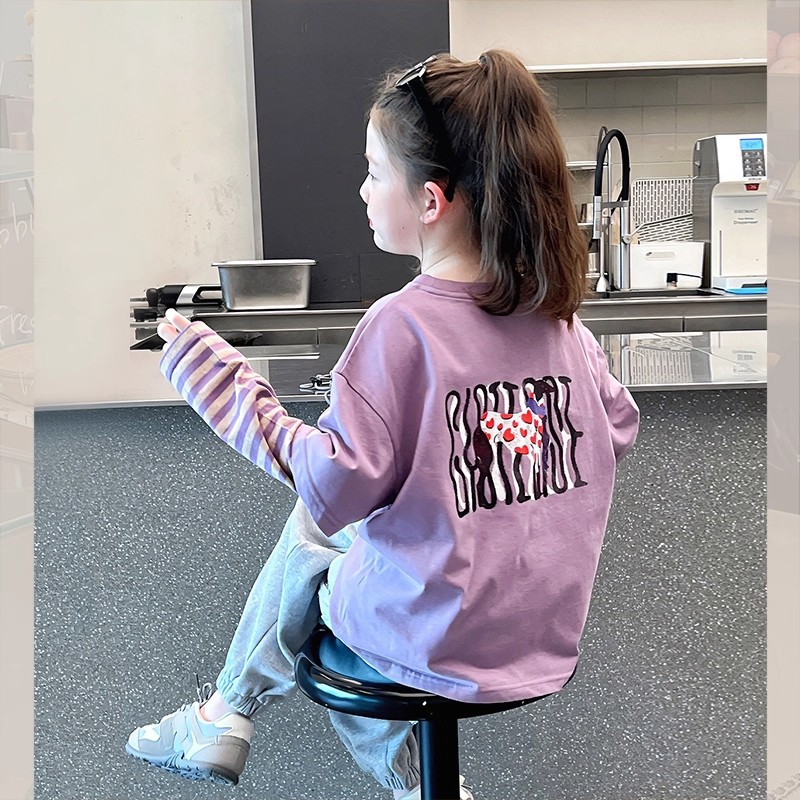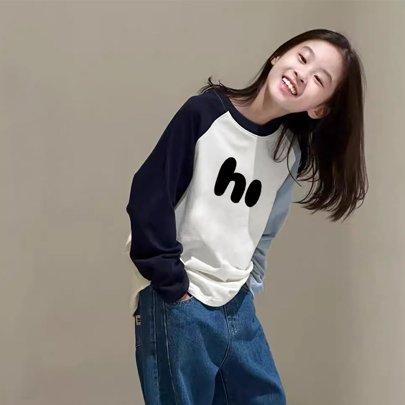 綿中大子供用ラグランスリーブ長袖Tシャツ秋新作女子ボトムスシャツ子供春秋トップス