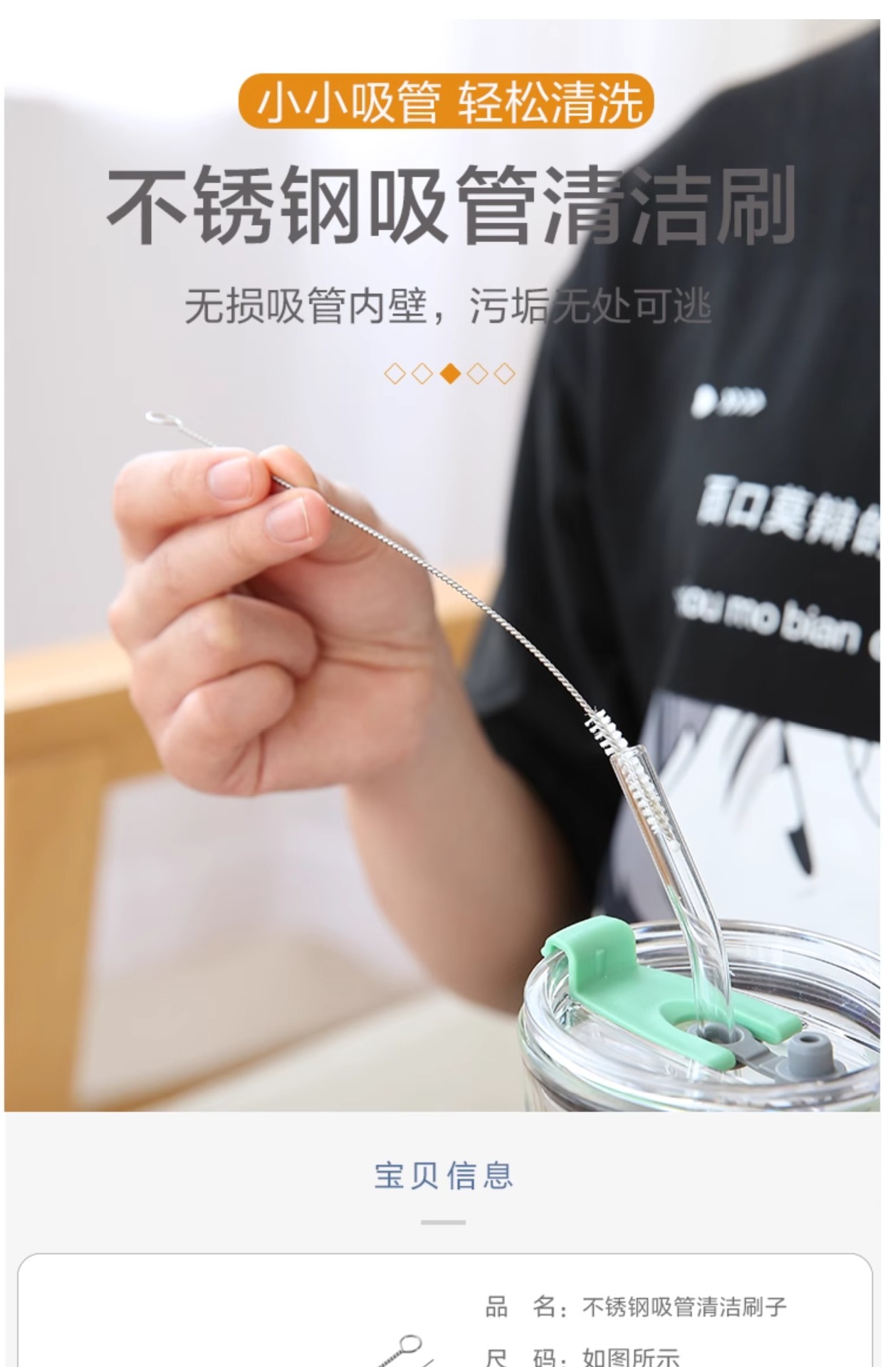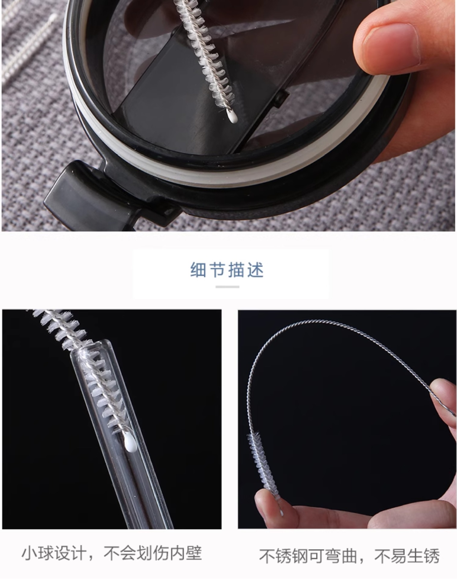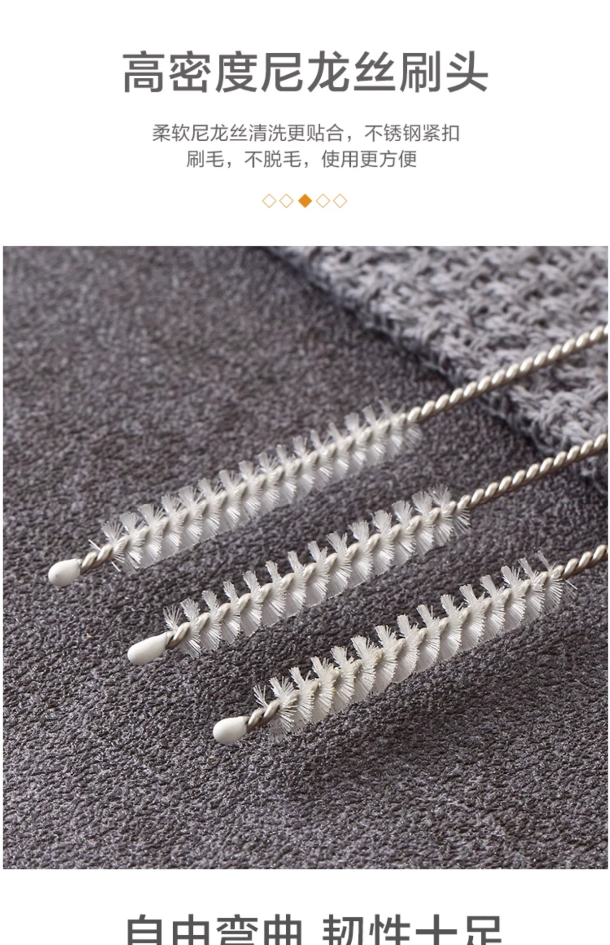 吸管刷奶瓶清洁刷细长杯盖清洗刷奶嘴杯刷加粗加长软尼龙毛刷家用