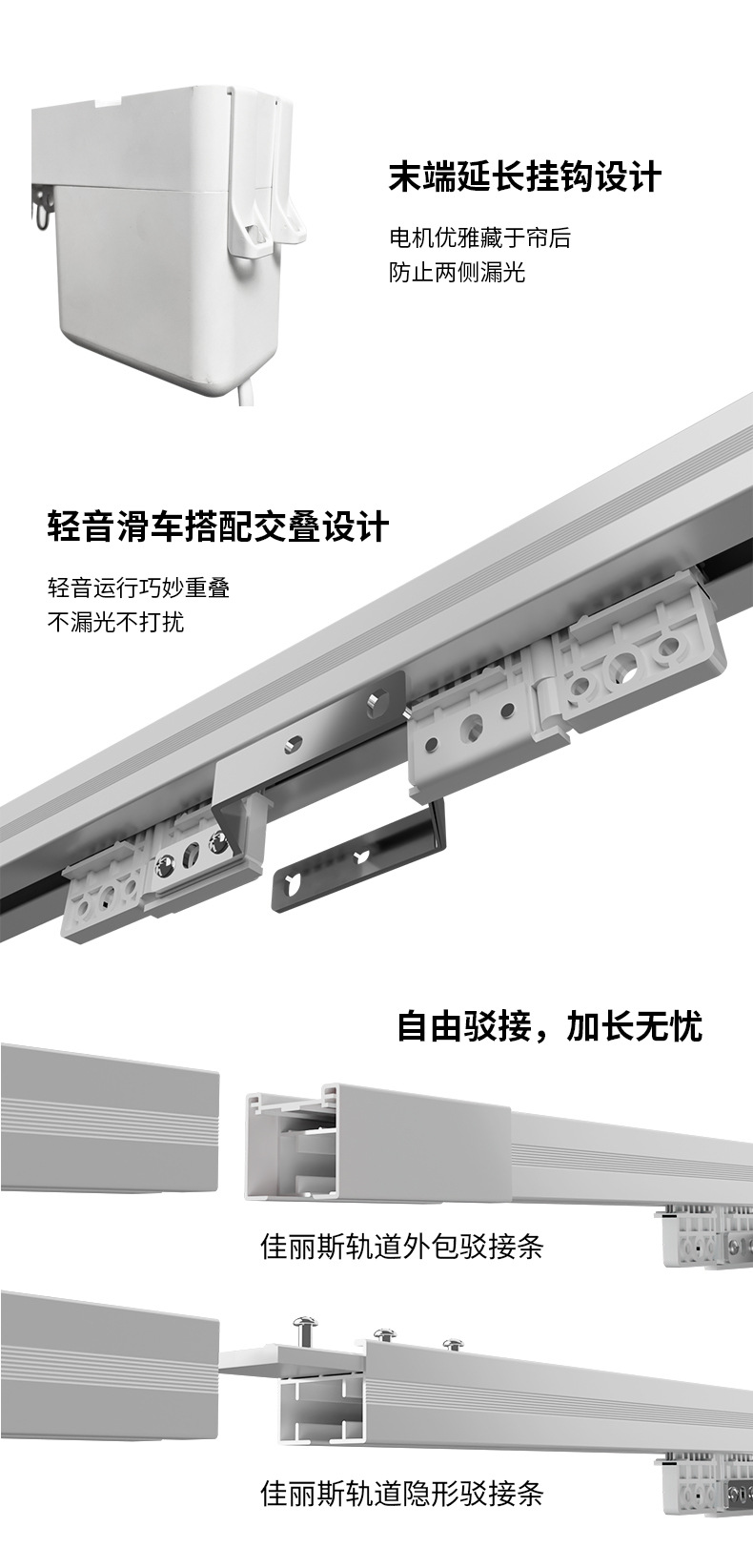 佛山の新型の佳麗斯の電動の軌道の部品はカーテンのガイドの端の奥科尚飛の軌道の伝動の箱を閉じます。