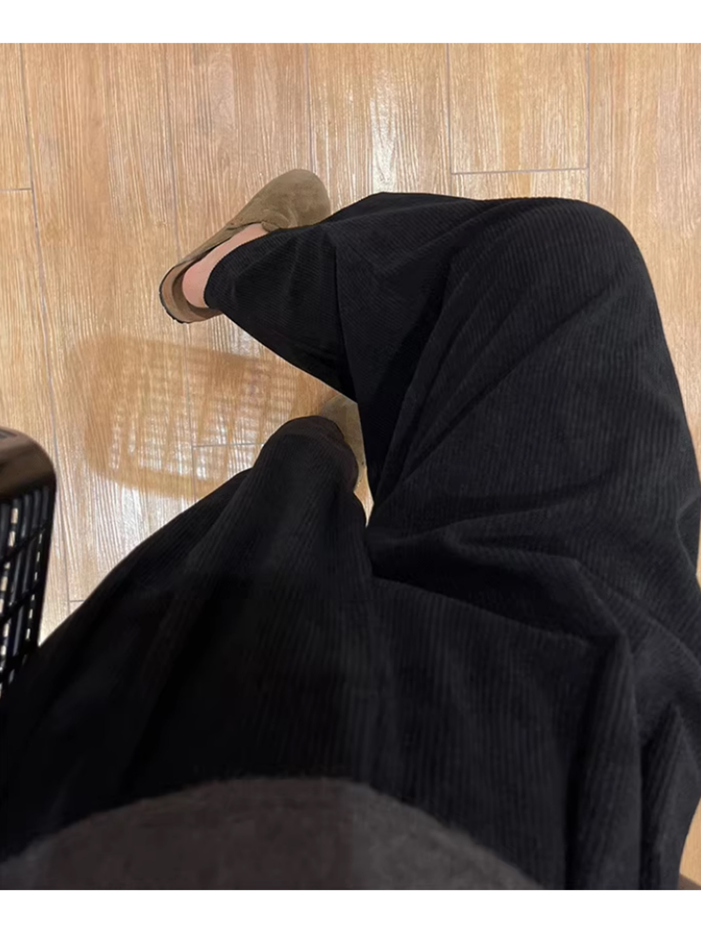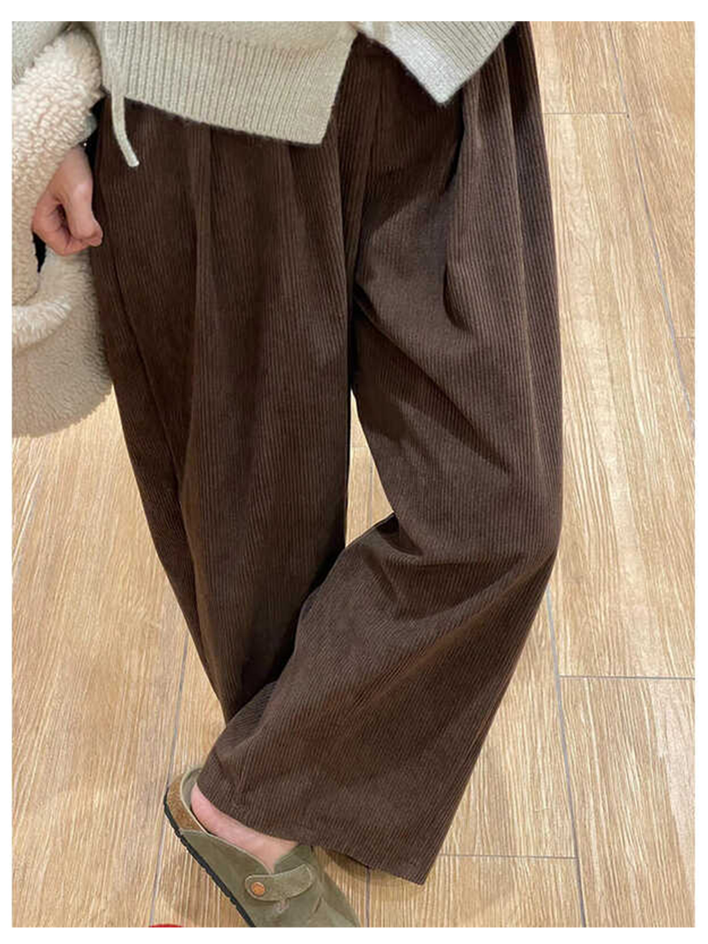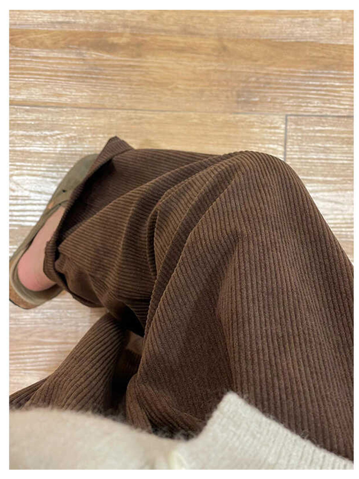 春秋の妊婦さん向けメイラードコーデュロイカジュアルパンツ、秋冬の裏起毛ゆったり大きいサイズ、お腹をサポートするストレートパンツ、おばあちゃんパンツ