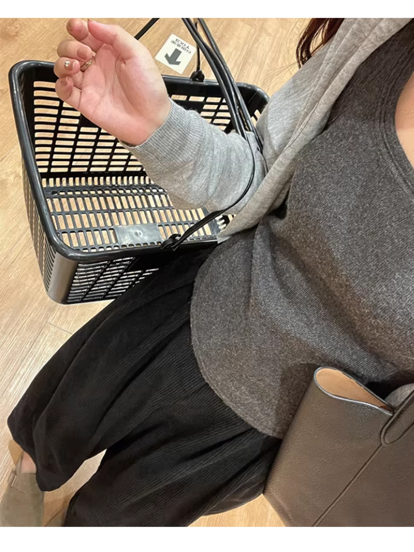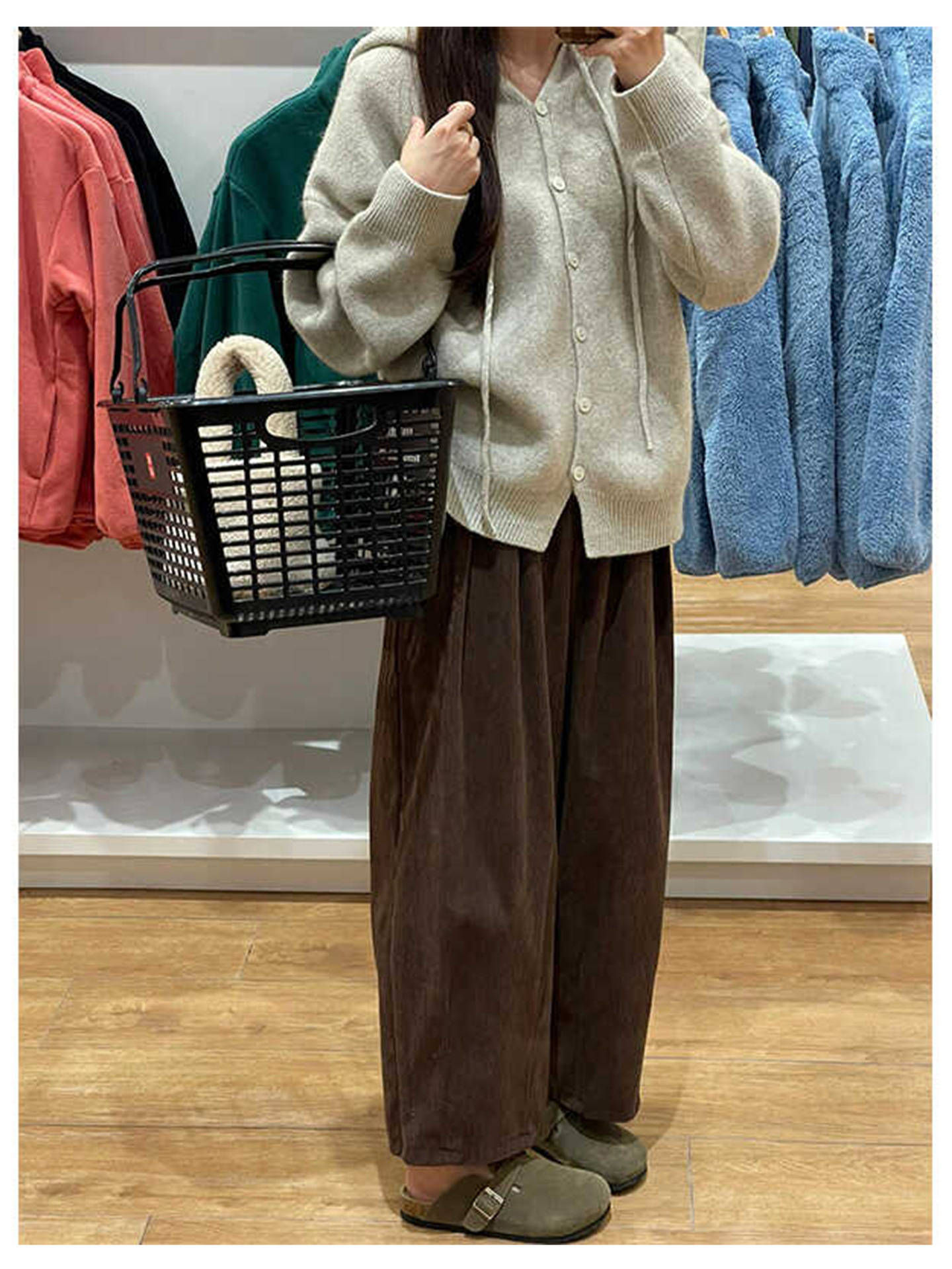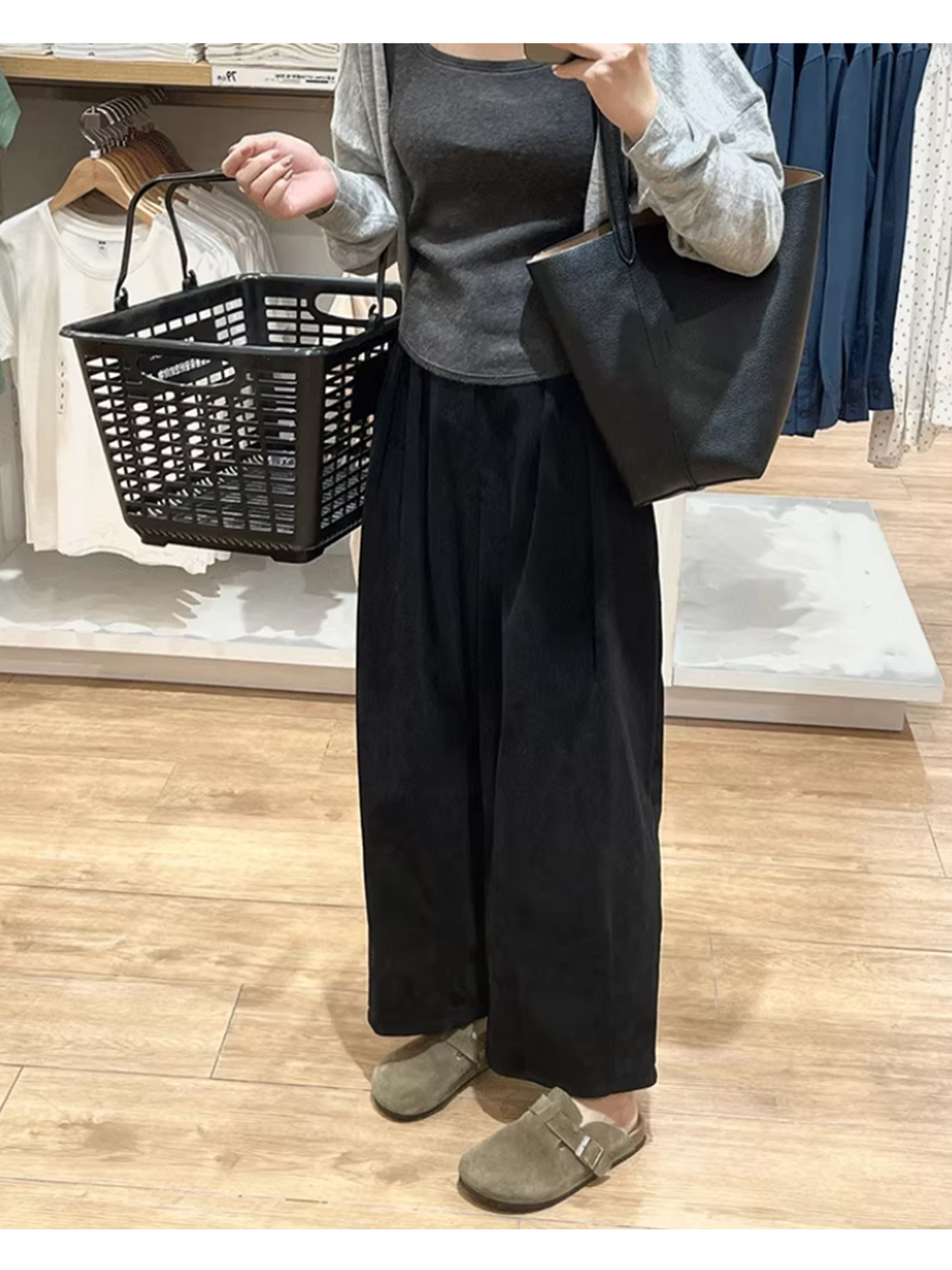 春秋の妊婦さん向けメイラードコーデュロイカジュアルパンツ、秋冬の裏起毛ゆったり大きいサイズ、お腹をサポートするストレートパンツ、おばあちゃんパンツ