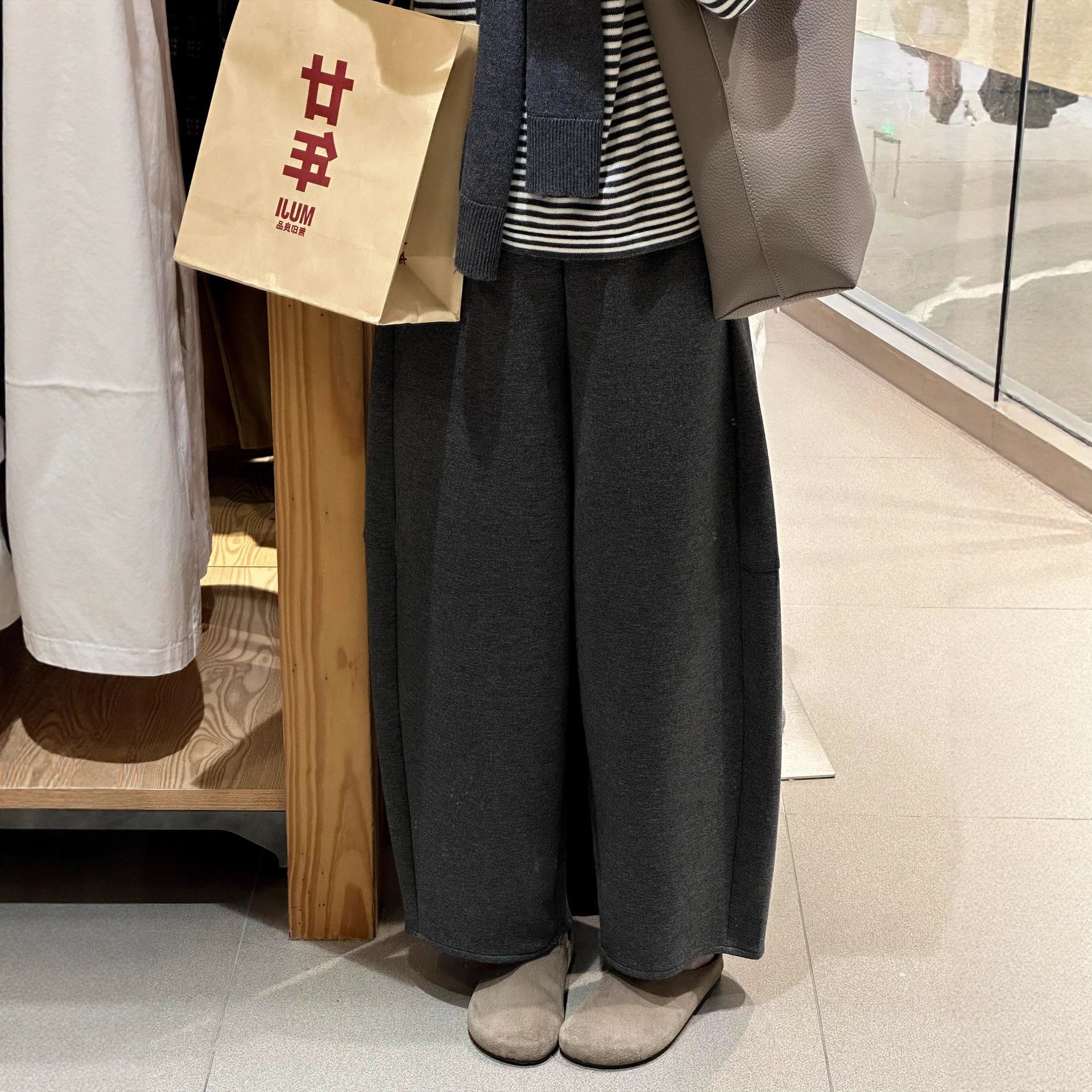 孕妇灰色加厚毛呢阔腿裤子孕妇秋冬加绒休闲运动卫裤流行梧桐裤