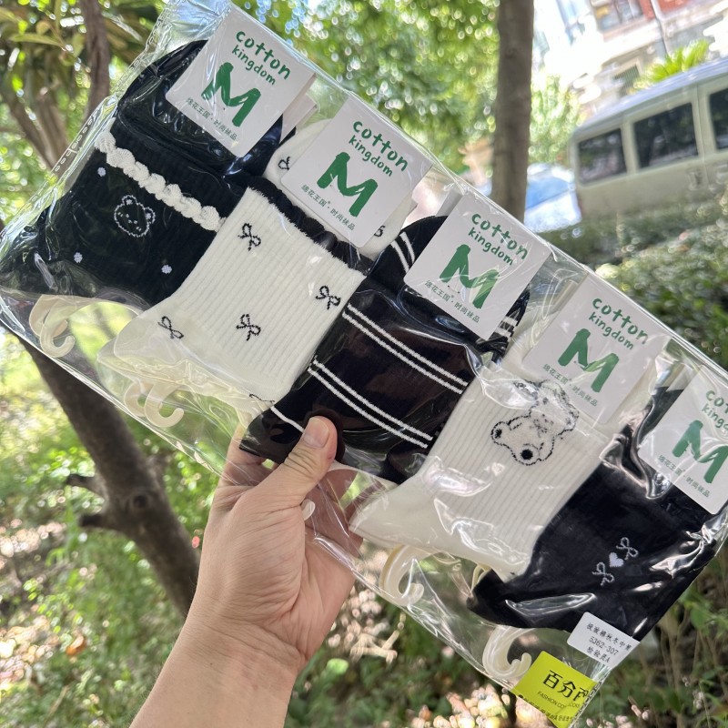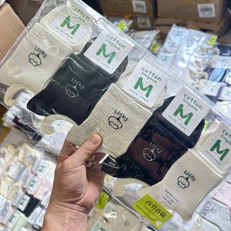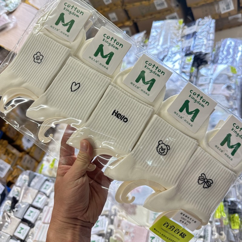 绵花王国袜子女秋冬季中筒防臭吸汗可爱运动时尚百搭少女棉袜