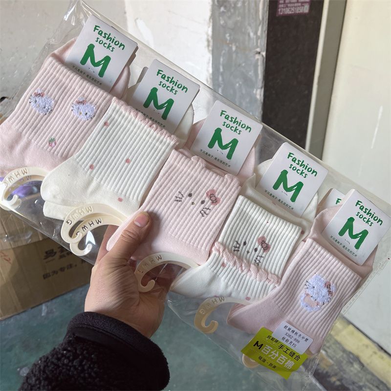 绵花王国秋冬款新款女士中筒袜卡通女袜日系学院风韩版学生棉袜子