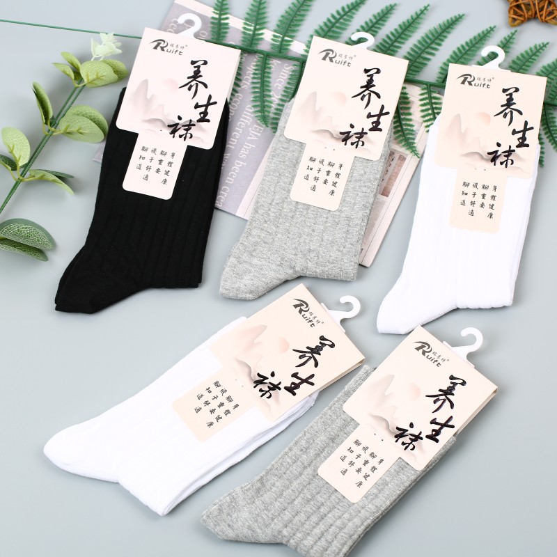瑞夫特靴下養生靴下中筒綿双針厚手男性純色純黒純白秋冬靴下3006