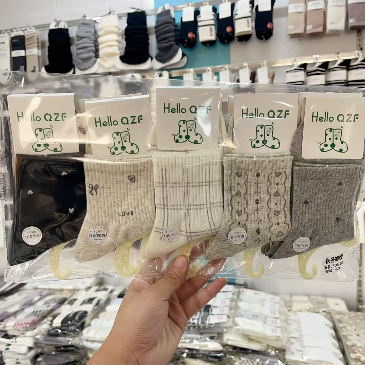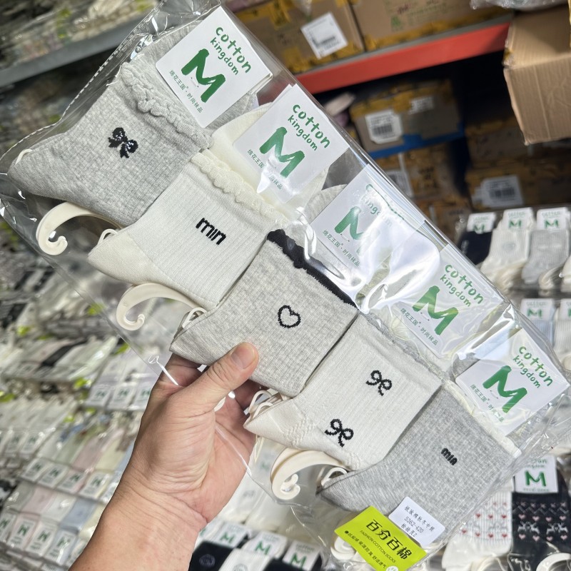 绵花王国新疆棉袜子女款中筒袜吸湿排汗纯色字母秋冬女袜中厚袜