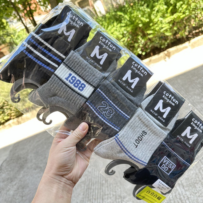 绵花王国新品秋冬季中厚男士中筒学院风运动款棉袜透气中筒棉袜