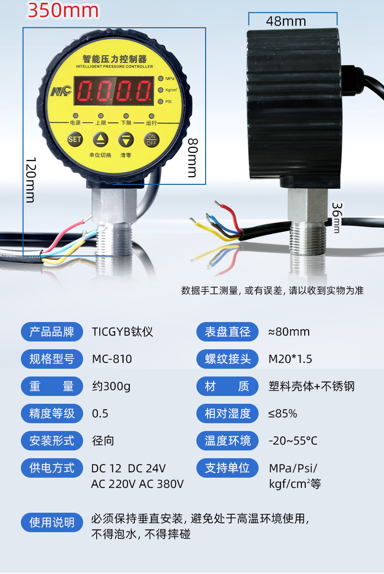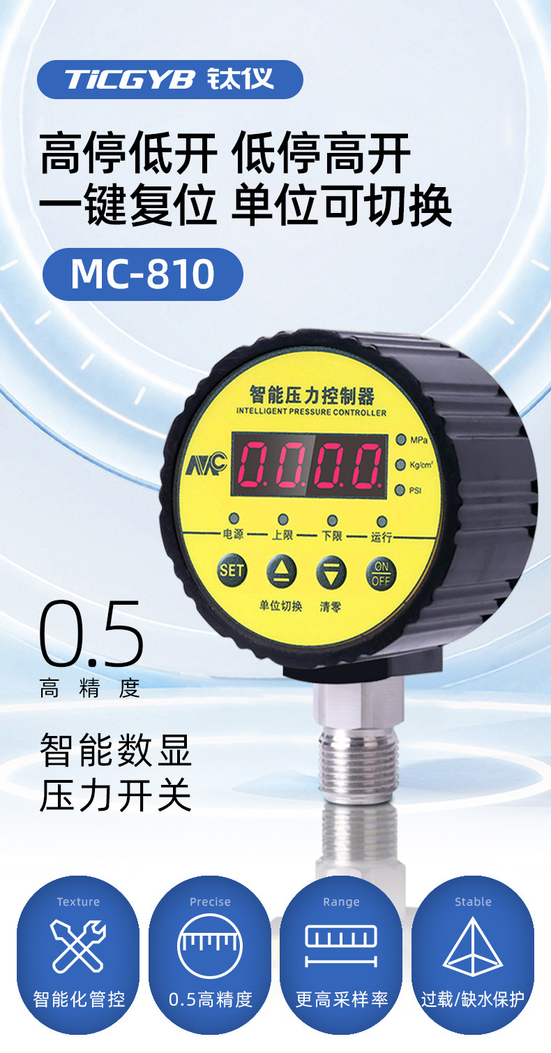 钛仪传感MC-810智能数显压力开关控制器数字电接点电子油液气压表