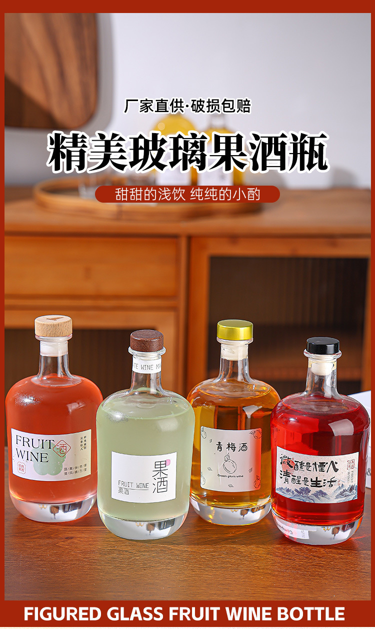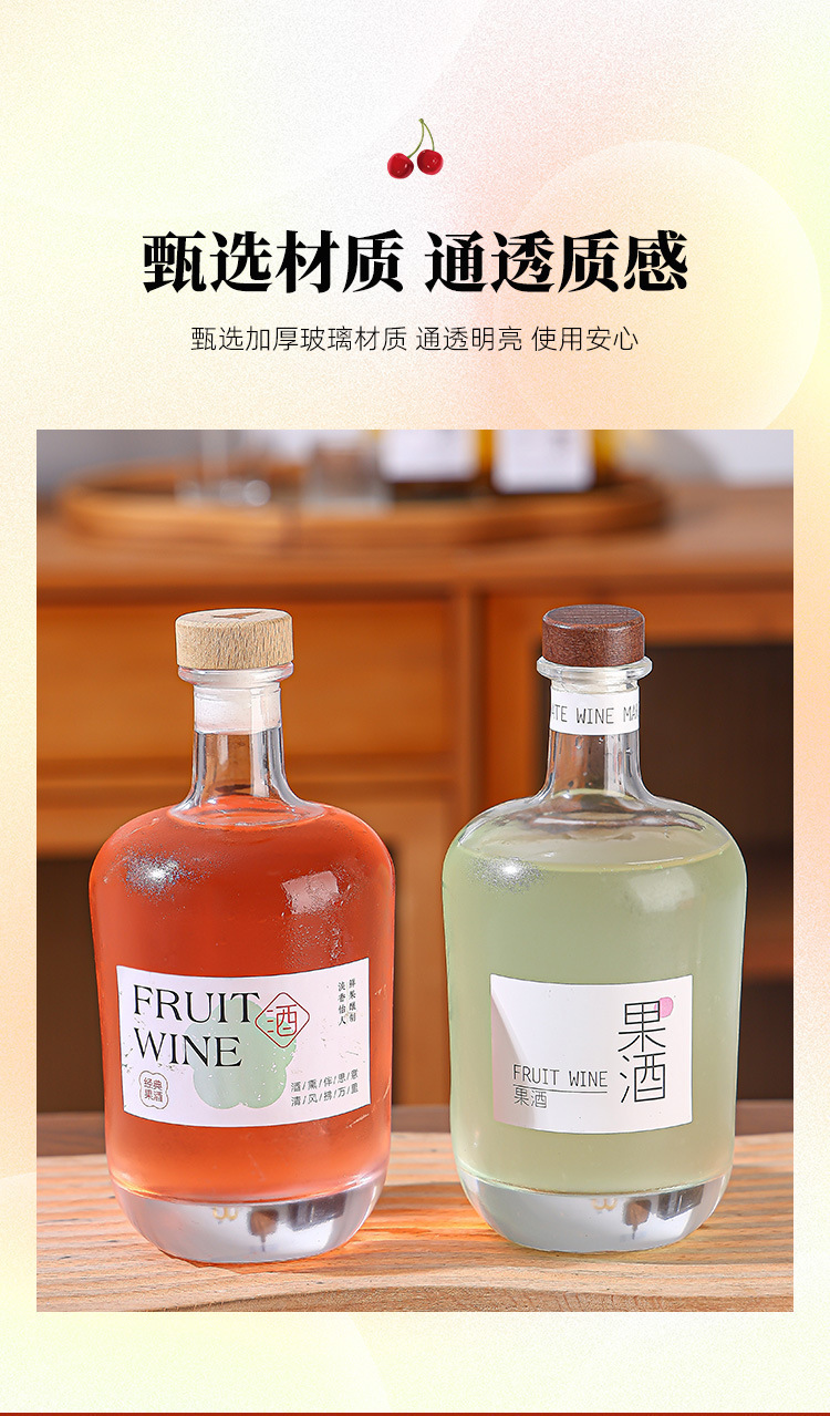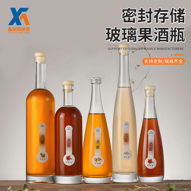 厂家直销透明玻璃果酒瓶空瓶高颜值多种规格自酿酒密封分装瓶套装