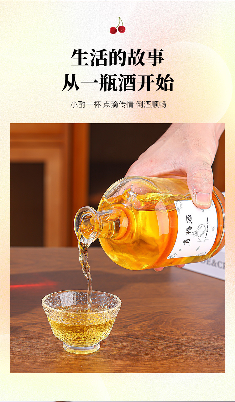 多规格圆形大肚玻璃果酒瓶密封带盖饮料瓶果酒分装瓶自酿青梅酒瓶