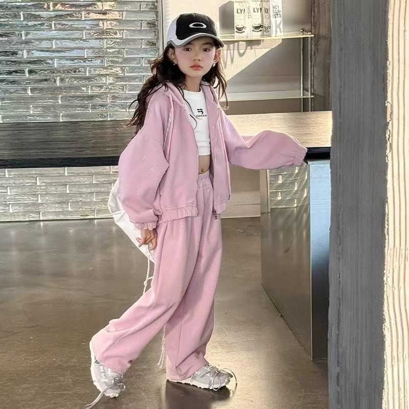 儿童女童套装新款春秋款中大儿童秋装连帽休闲洋气秋款时髦两件套