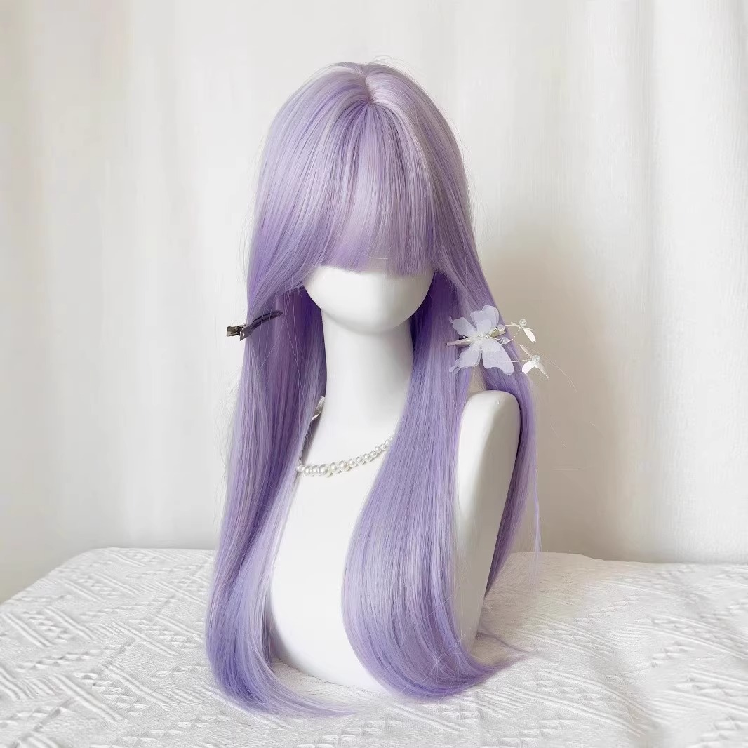 [Qianshi Zidai] 女性用ウィッグ ロングストレートヘア 低彩度 パープル ナチュラル ユニバーサル cos フルヘッドカバー