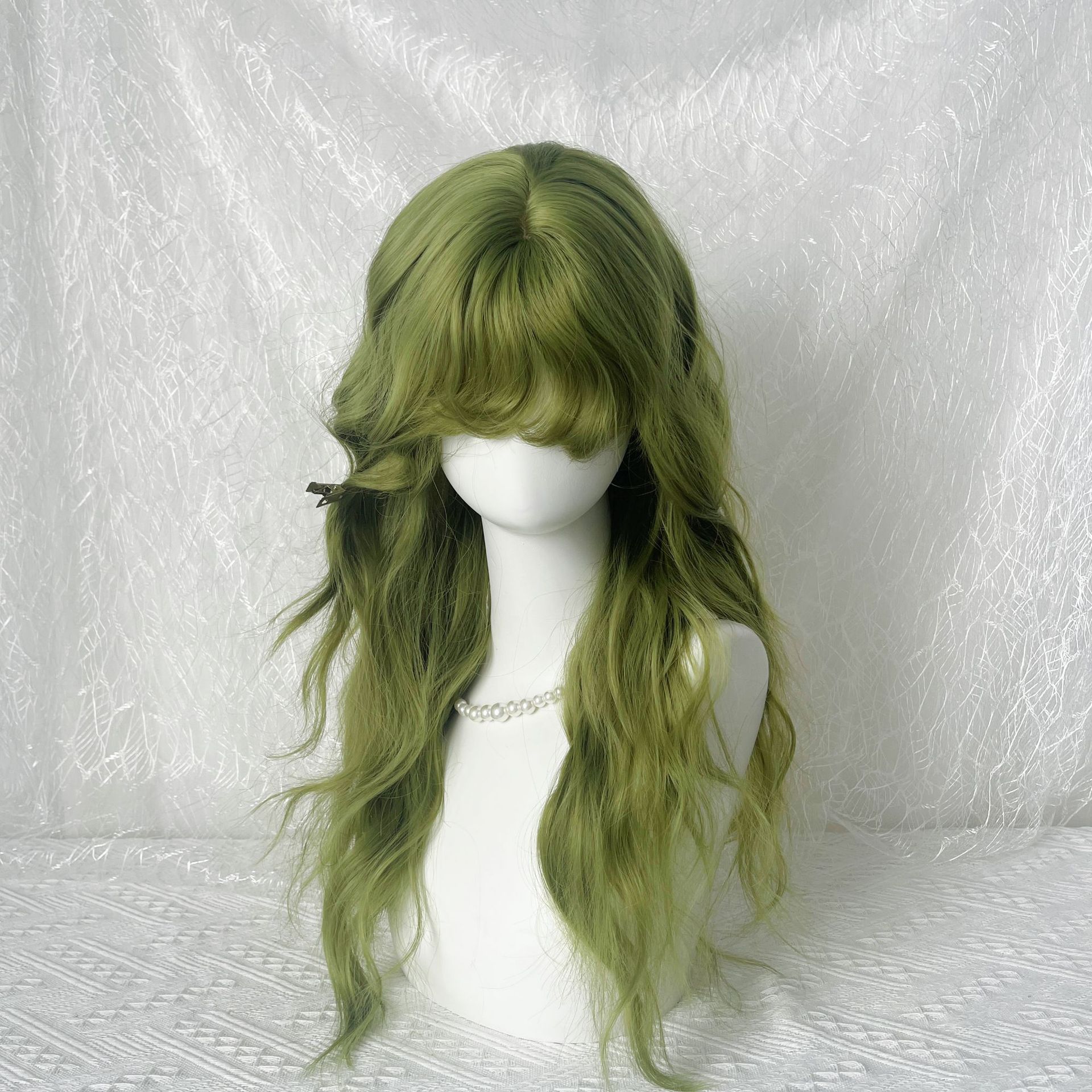 【青苹】假发女长卷发果绿色水波纹亚比风复古羊毛卷整顶式全头套