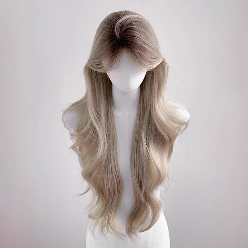 【亚裔辣妹】假发女中分奶茶灰金爆顶染渐变长卷发氛围感全头套