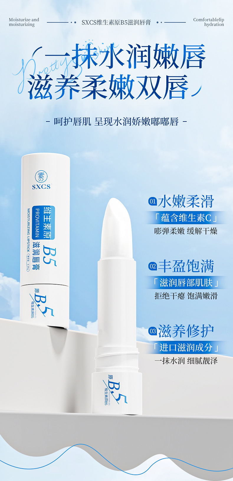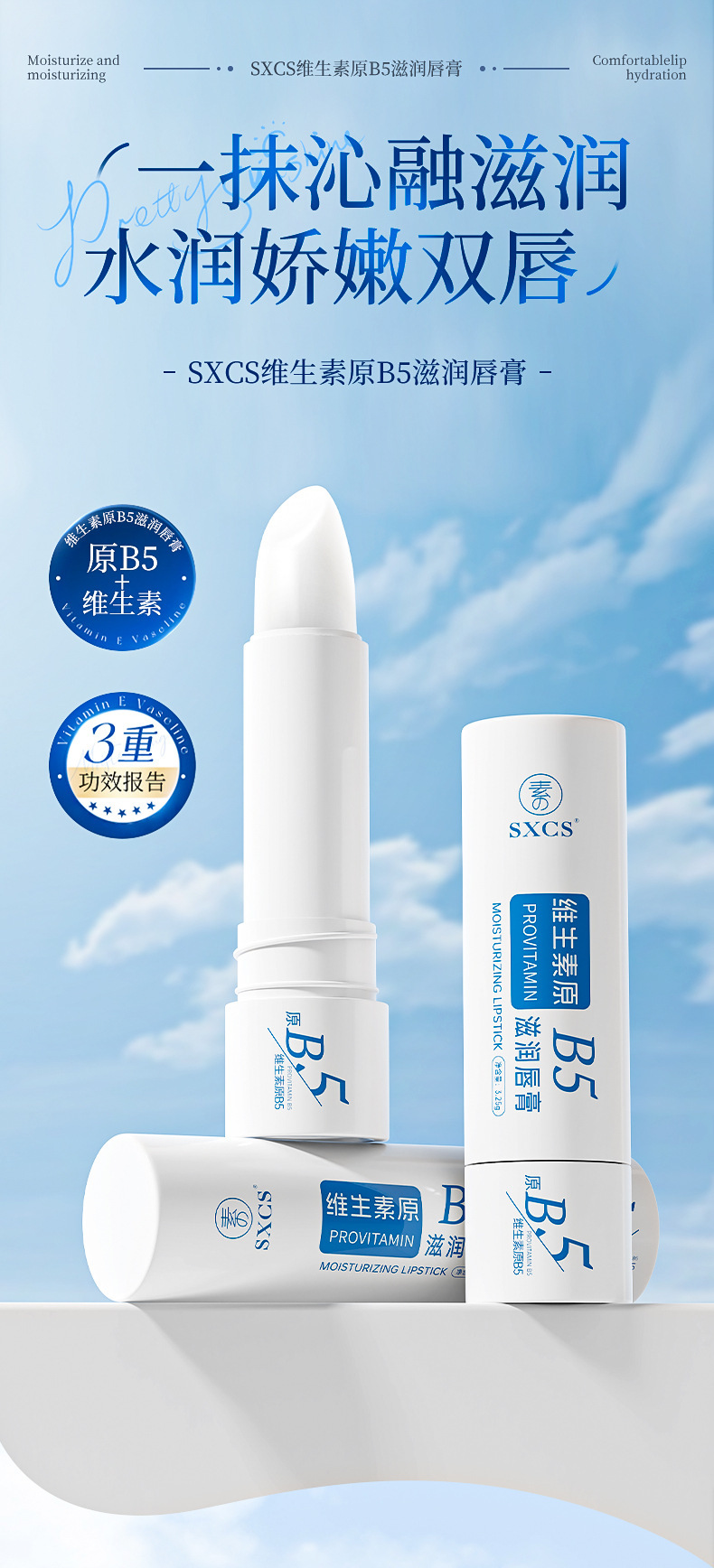 SXCS维生素原B5滋润唇膏滋润保湿持久补水淡化唇纹嫩滑厂家代发