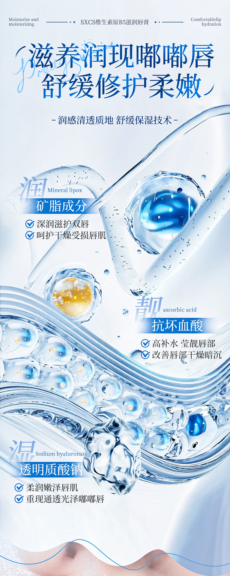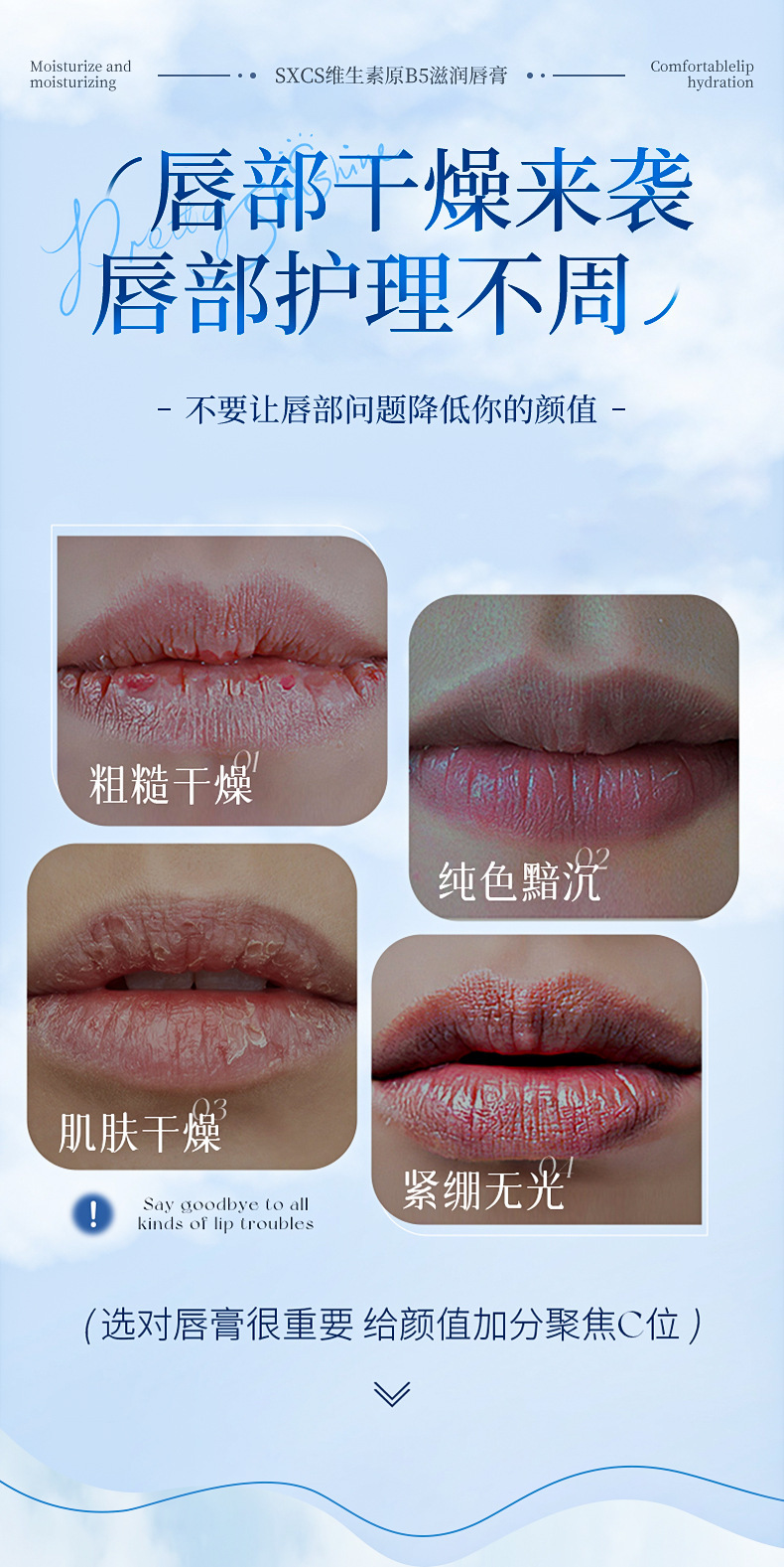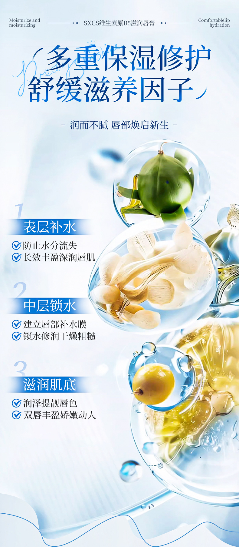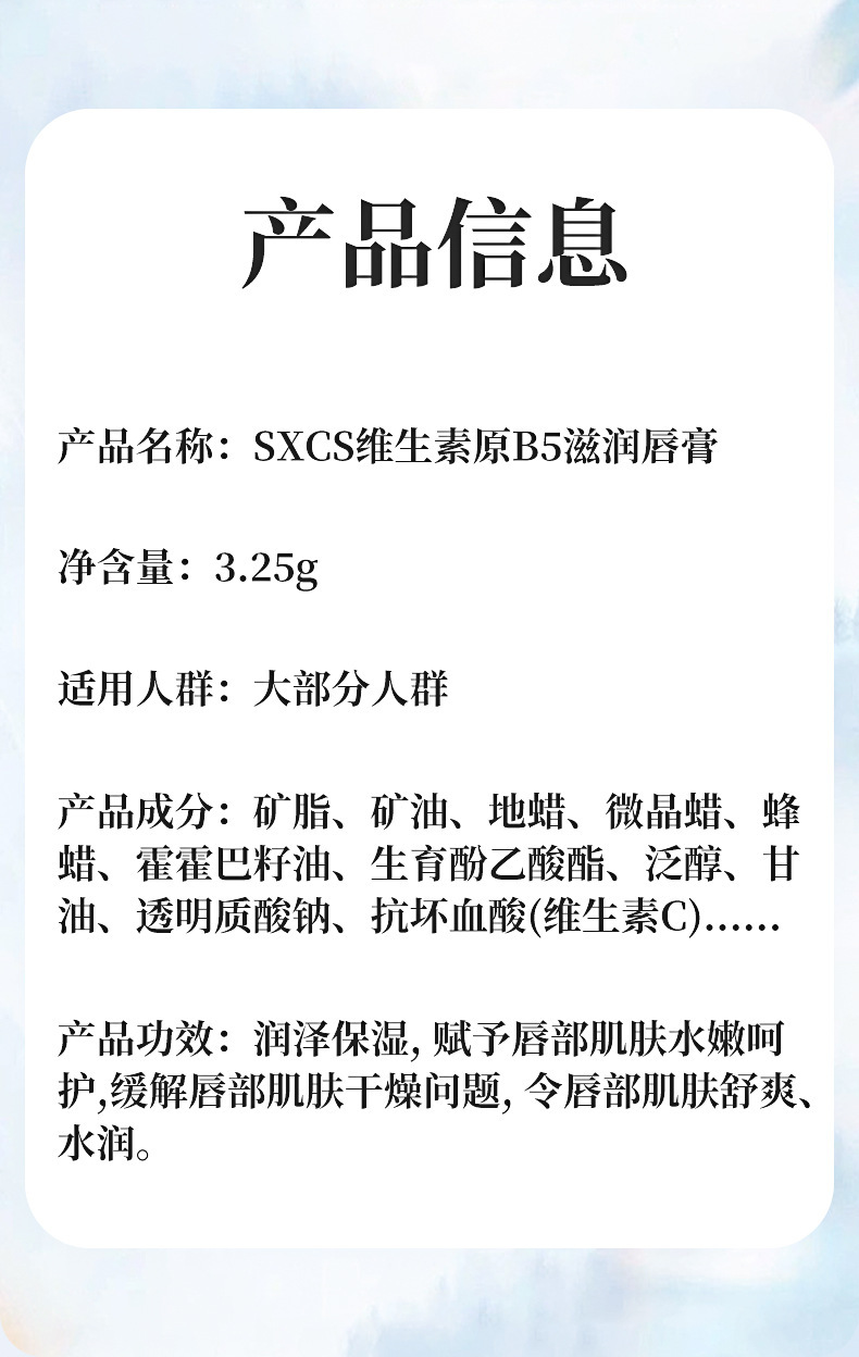 SXCS维生素原B5滋润唇膏滋润保湿持久补水淡化唇纹嫩滑改善干燥