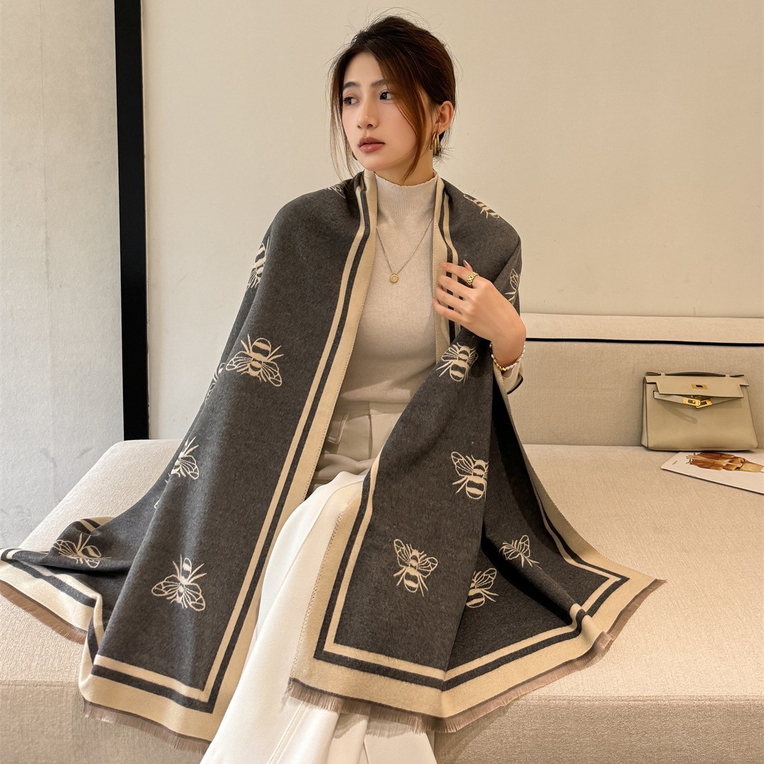 杭州跨洲围巾现货批发轻奢小蜜蜂提花围巾女秋冬新款保暖外搭披肩