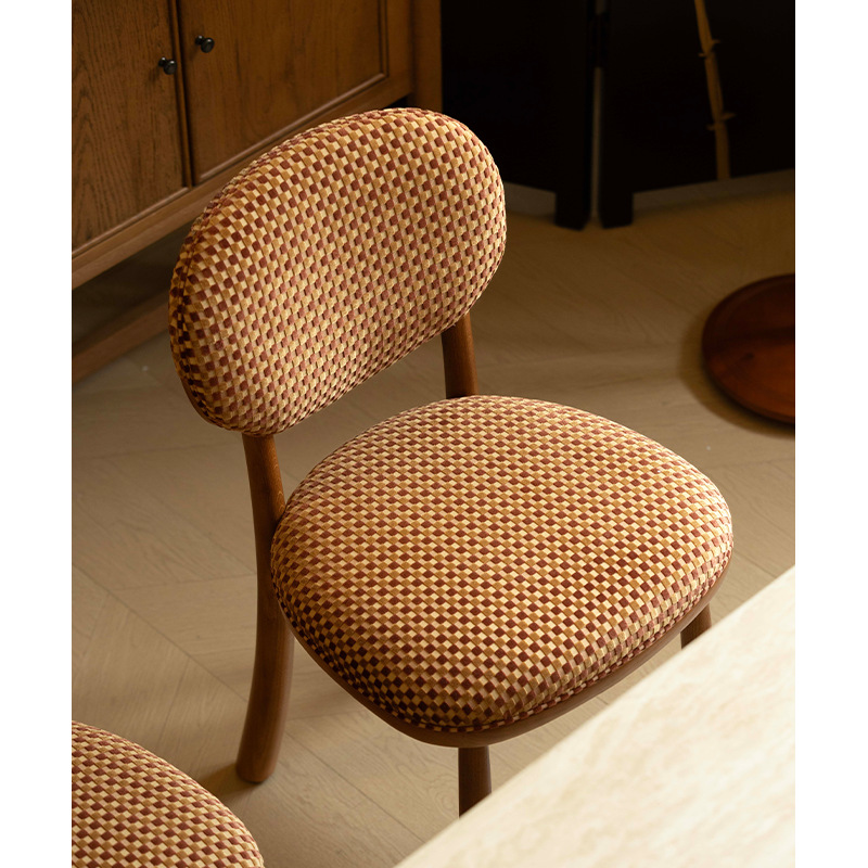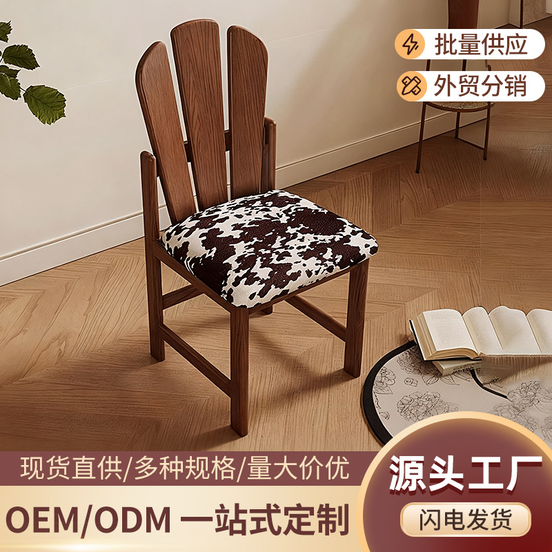 实木中古餐椅北欧高级感复古风餐桌椅简约莫纳彩软包靠背梳妆坐椅