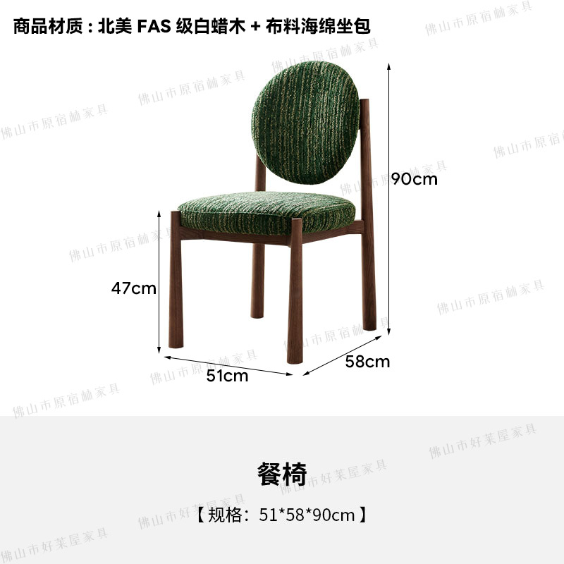 高级感复古风白蜡木实木餐椅法式中古佛山设计师酒店民宿布艺椅子
