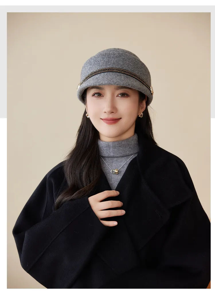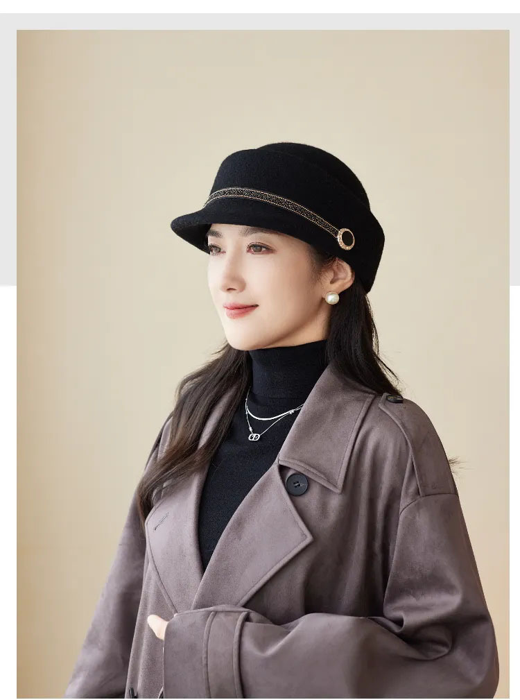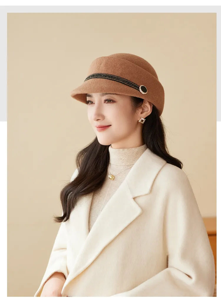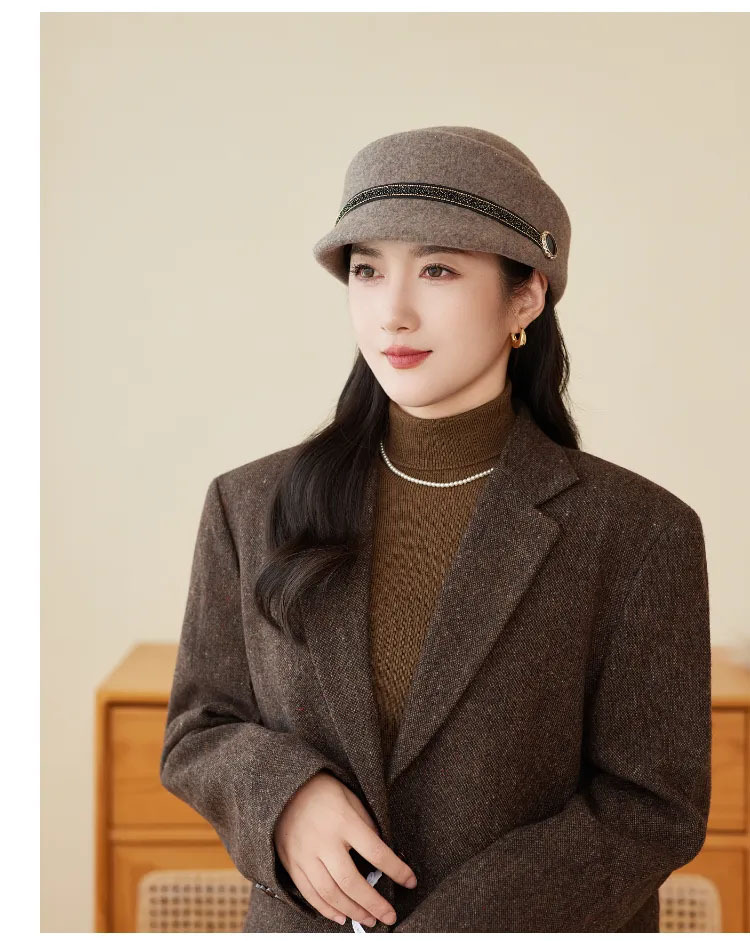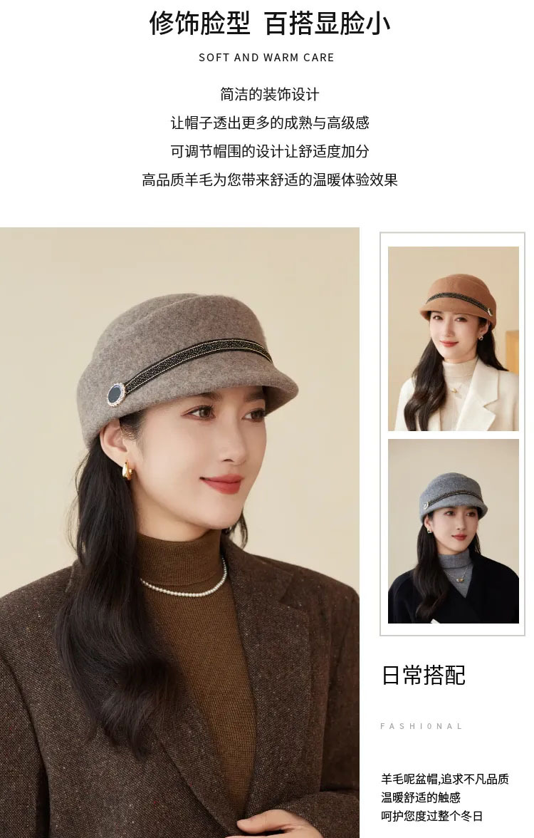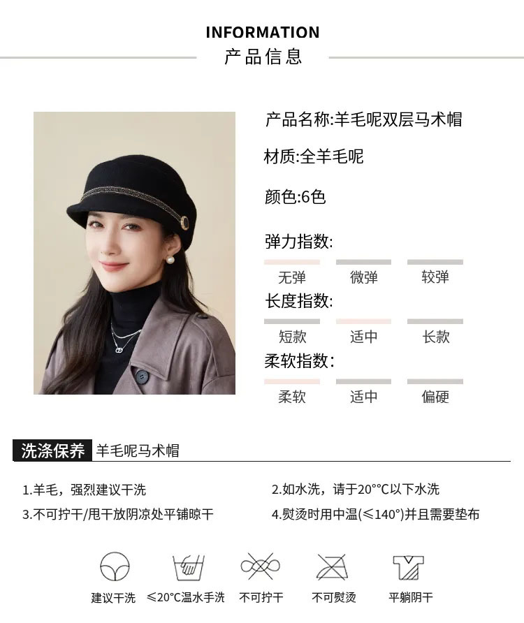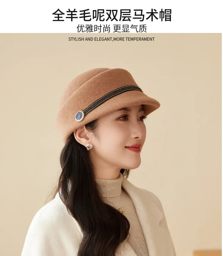 新款帽子女羊毛秋冬季复古减龄马术帽显脸小鸭舌帽户外出游百搭潮