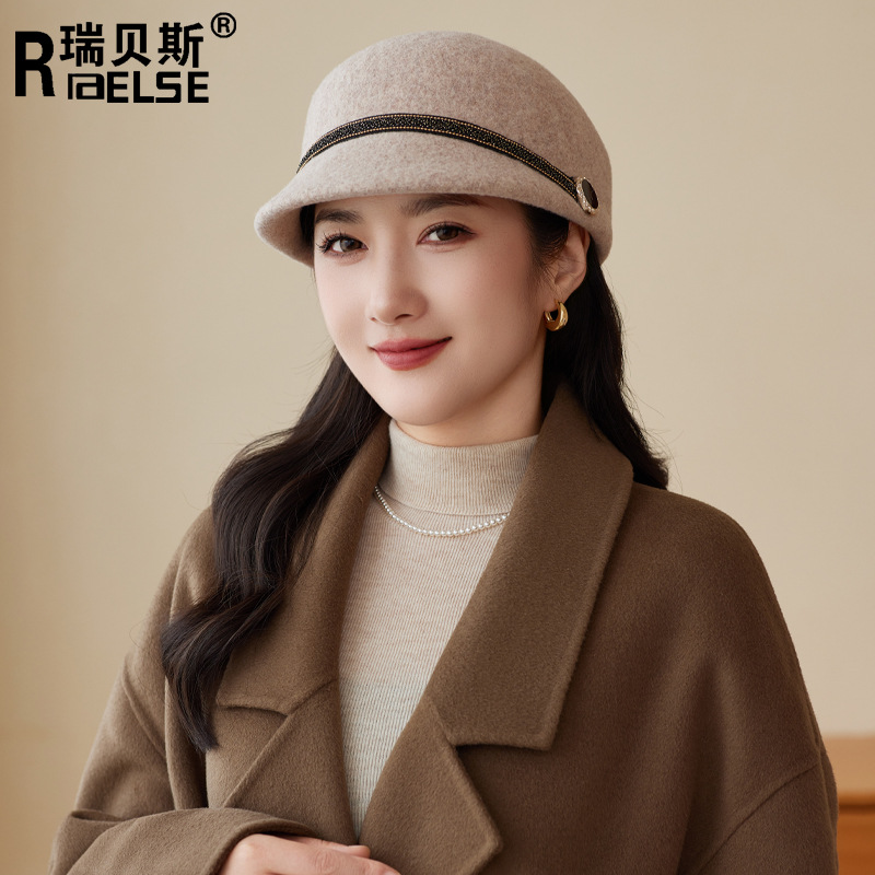 帽子女秋冬时尚优雅百搭渔夫帽户外出游韩版气质盆帽羊毛混纺保暖