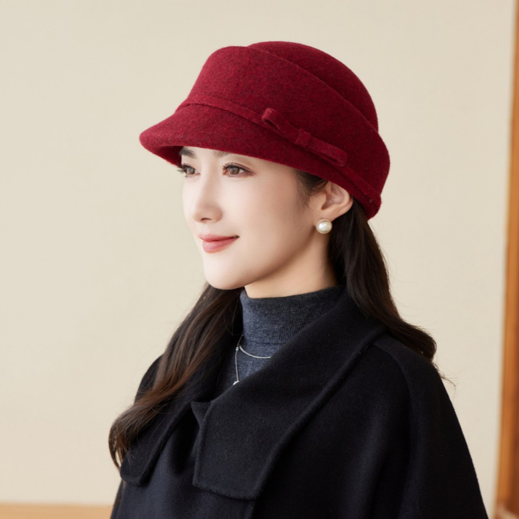 新款帽子女羊毛蝴蝶结秋冬季韩版时尚百搭户外出游显脸小盆帽礼帽