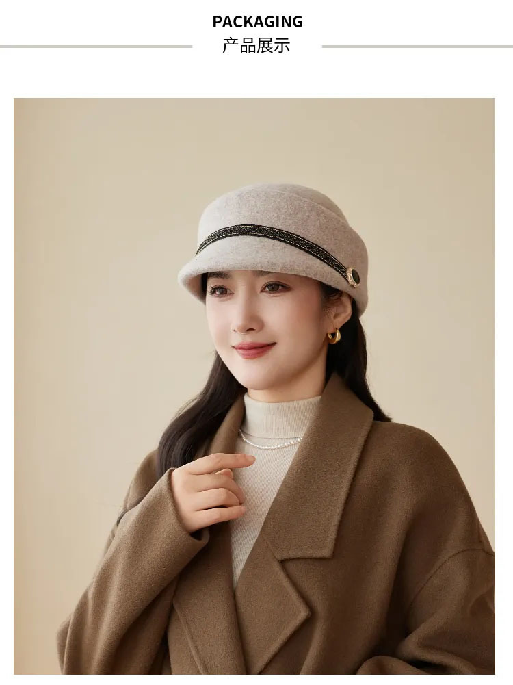 新款帽子女羊毛秋冬季马术帽户外出游时尚百搭显脸小赫本风贝雷帽