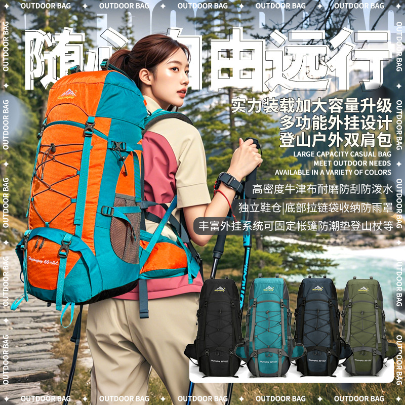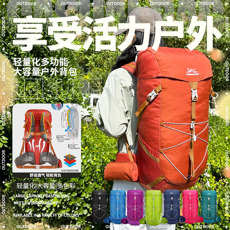 国境を越えた新型アウトドア減負旅行登山バッグ大容量スポーツバッグ拡張徒歩ランドセル大リュック男